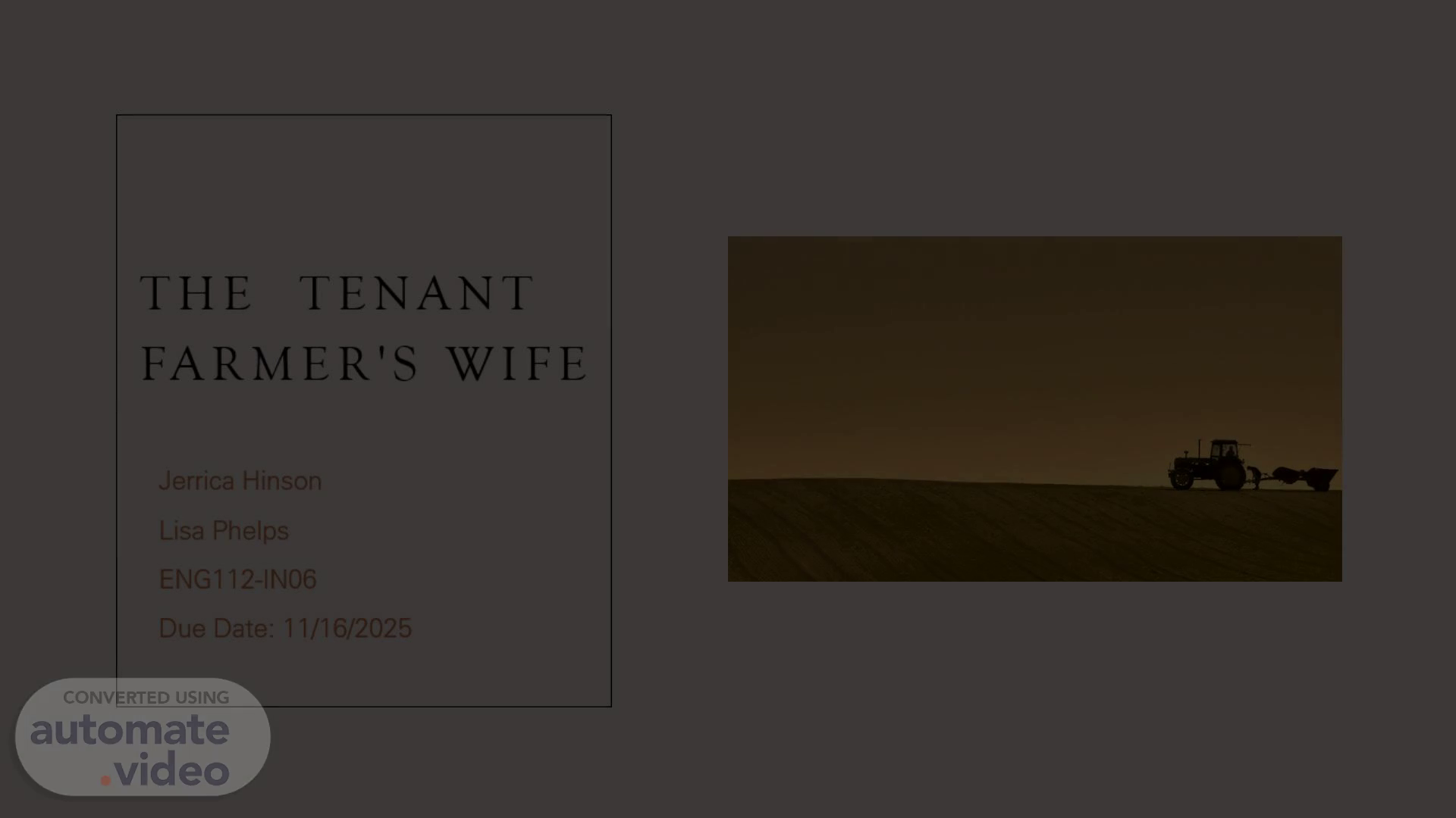 The Tenant Farmer's Wife. Jerrica Hinson Lisa Phelps ENG112-IN06 Due Date: 11/16/2025.