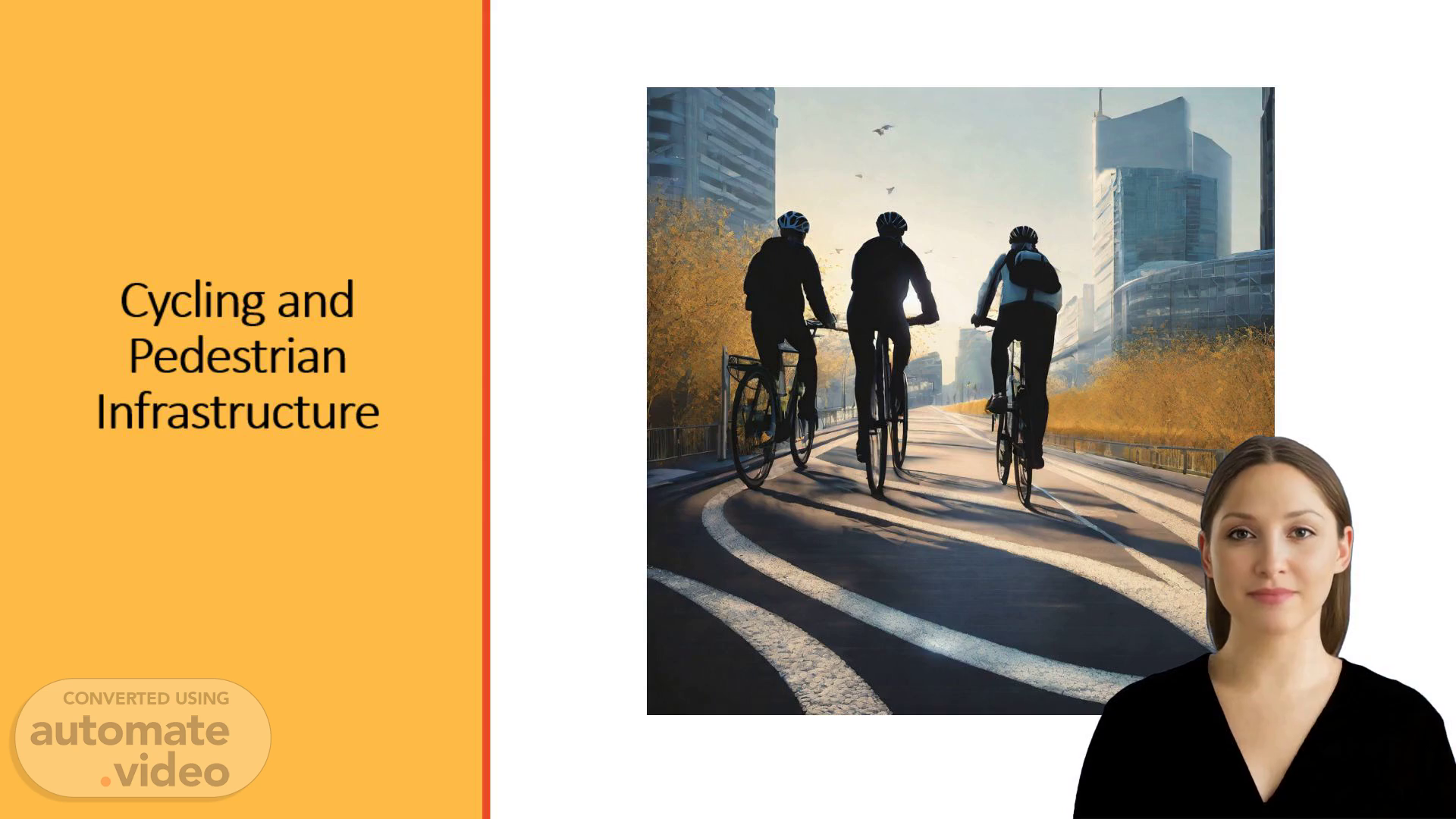 [Audio] When improving cycling and pedestrian infrastructure, there are several challenges that need to be addressed. Resistance from motorists and local businesses may be caused by worries about increased traffic congestion or lessened parking spaces. Another barrier could be a lack of funding for implementation and maintenance. Furthermore, successful implementation relies on extensive planning and coordination between government agencies, transportation departments, and community organizations..