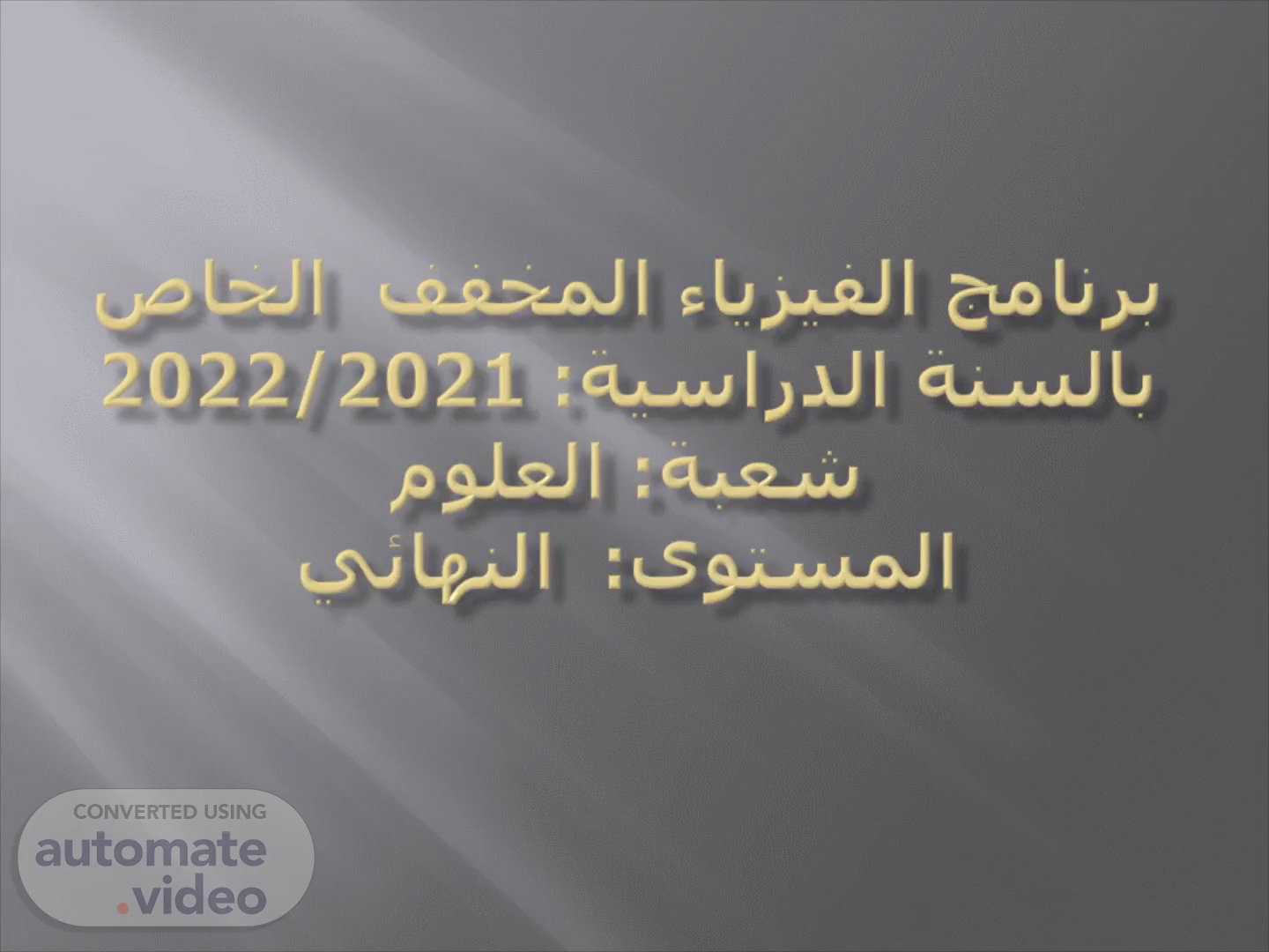 برنامج الفيزياء المخفف الخاص بالسنة الدراسية: 2022/2021 شعبة: العلوم المستوى: النهائي