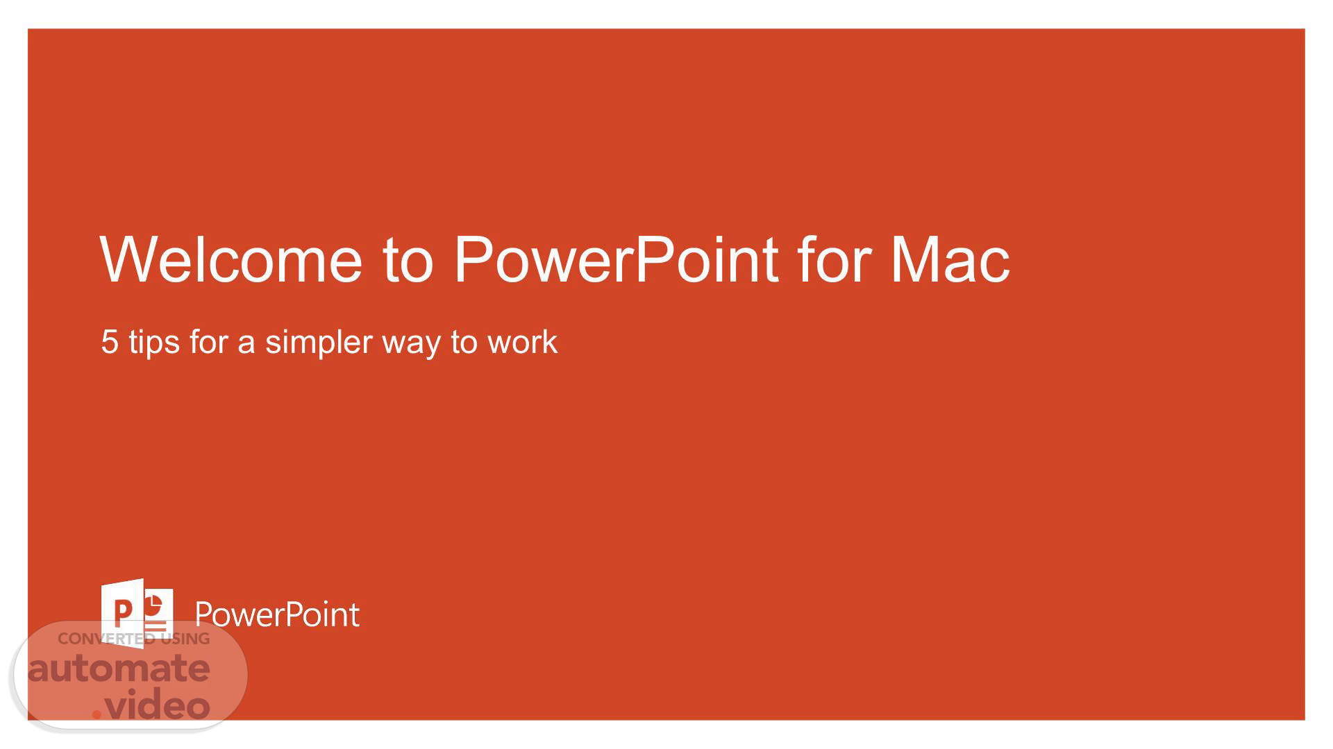 [Audio] Welcome to PowerPoint for Mac. Today we'll be looking at five tips on how to simplify your workflow. Learn how to use the Quick Access Toolbar take advantage of collaboration features and gain more control with the Selection Pane and sign-in features. Let's get started!.