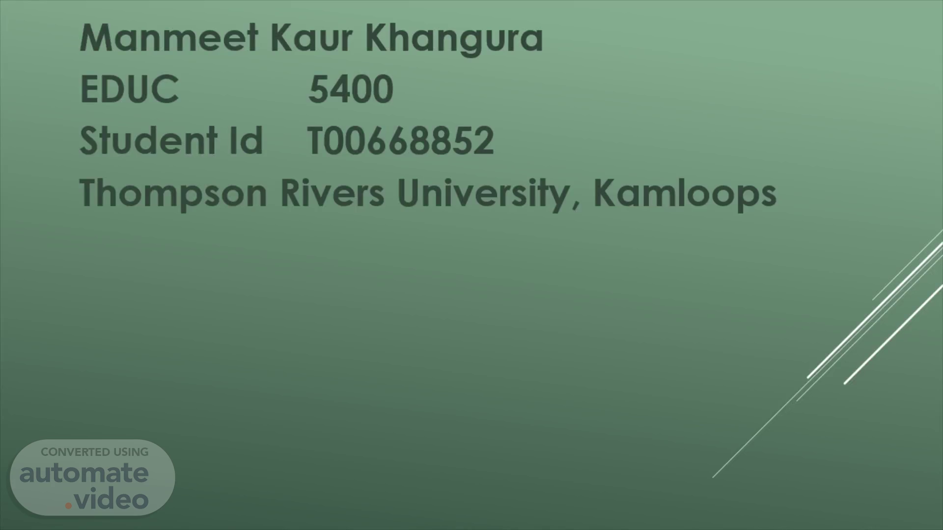 Manmeet Kaur Khangura EDUC 5400 Student Id T00668852 Thompson Rivers University, Kamloops.