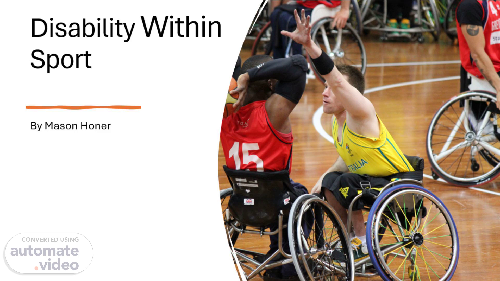 Disability Within Sport. By Mason Honer. [image] A group of people in wheelchairs playing basketball Description automatically generated.
