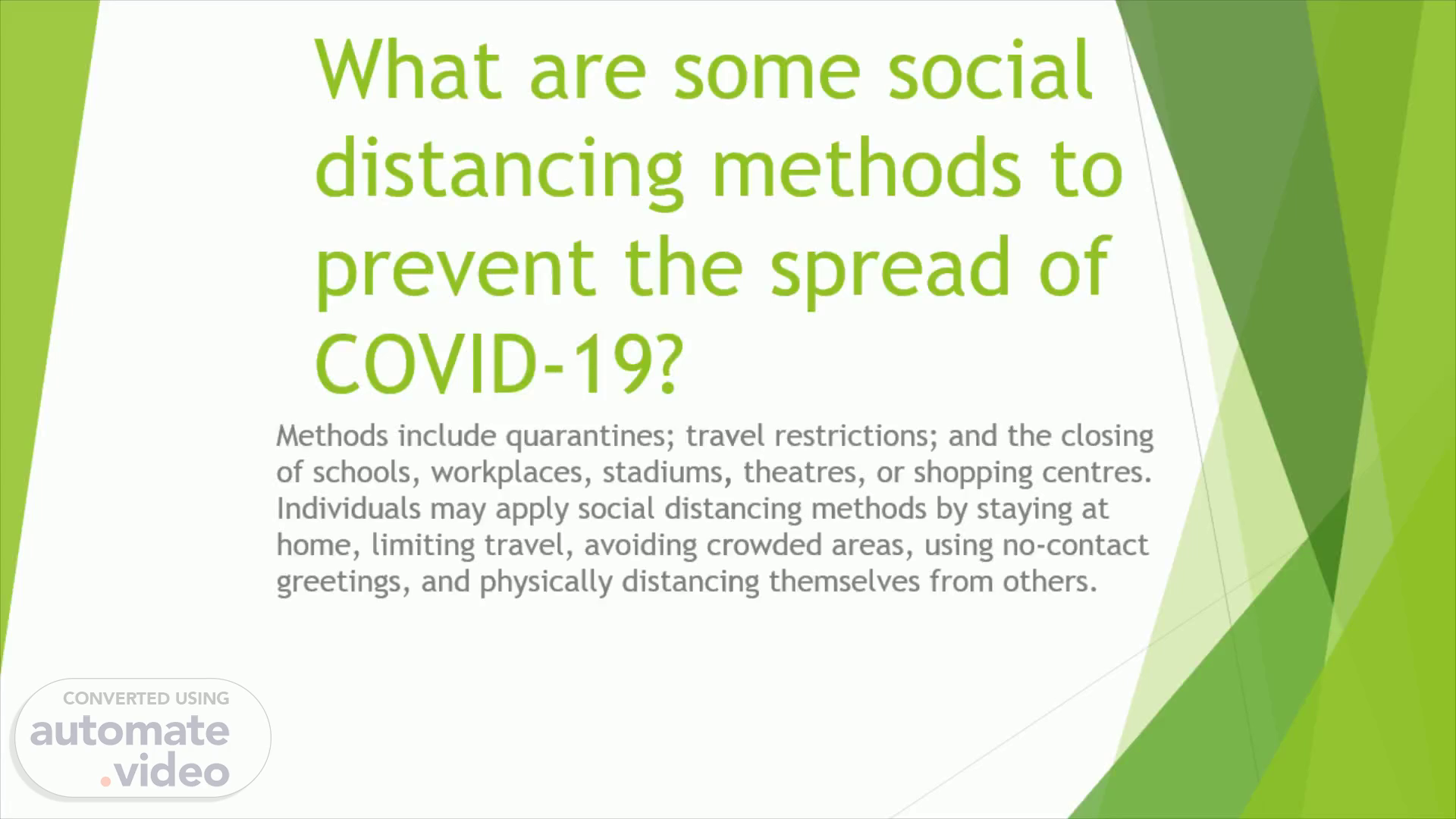 What are some social distancing methods to prevent the spread of COVID-19?.