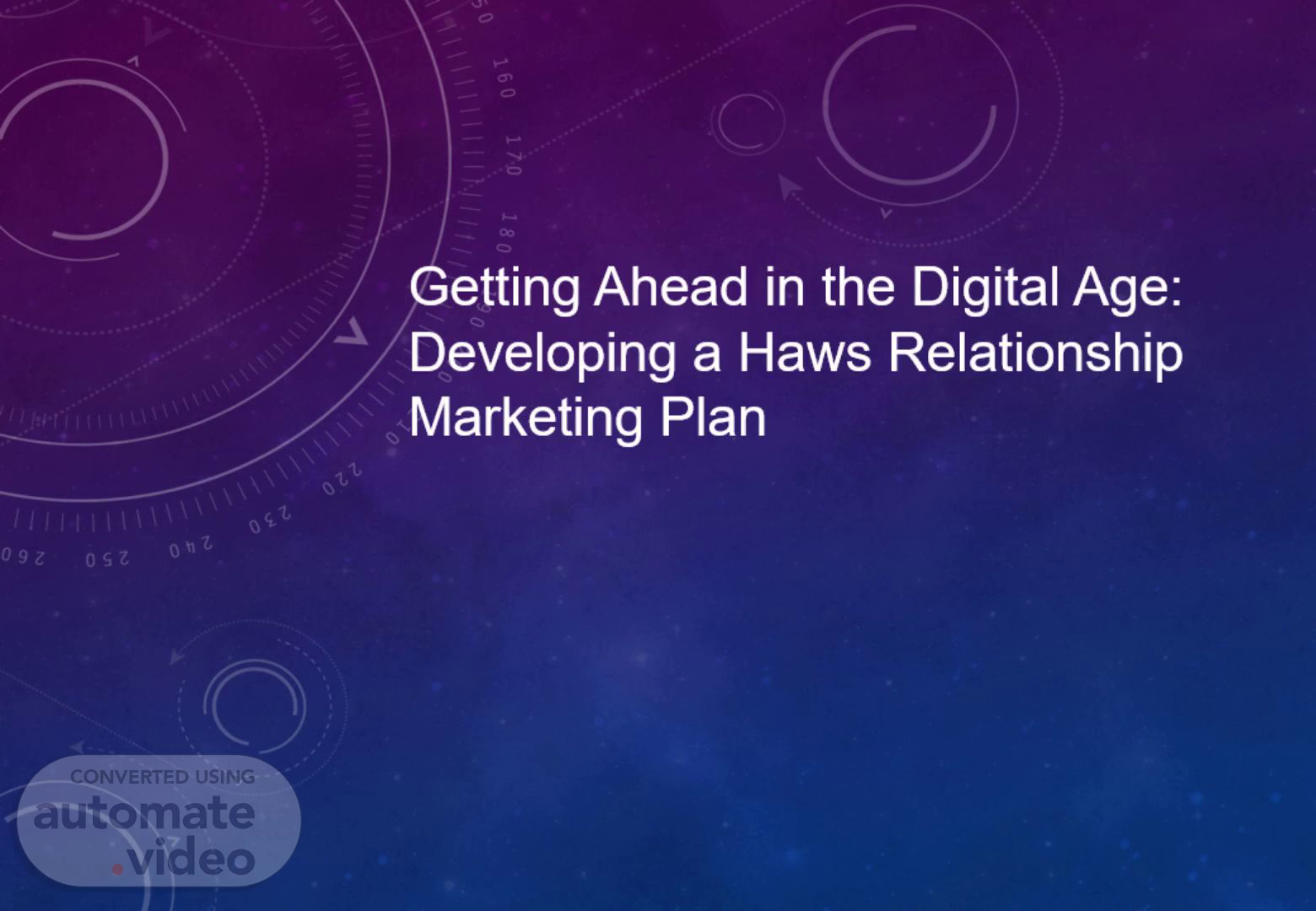 [Audio] Hello, the presentation topic is Getting Ahead in the Digital Age: Developing a Haws Relationship Marketing Plan. Welcome.