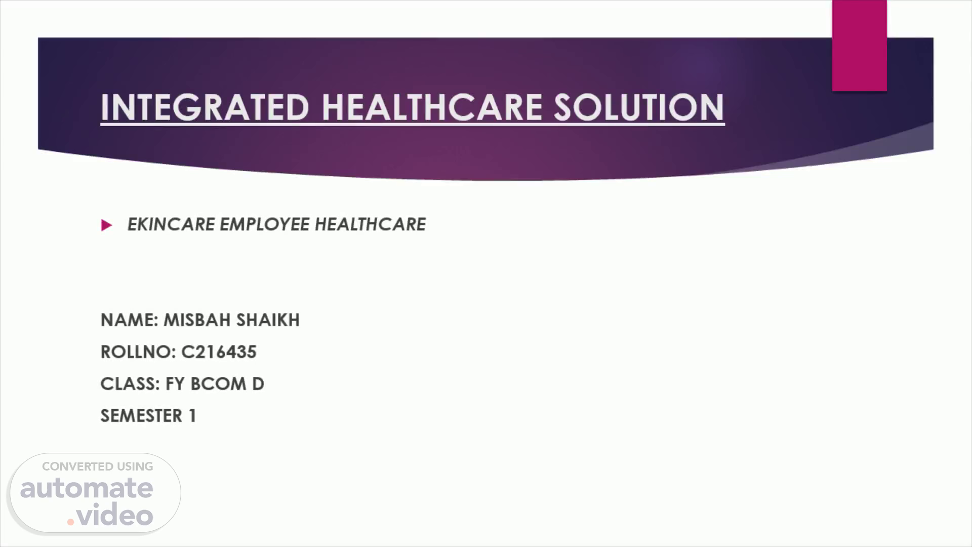 INTEGRATED HEALTHCARE SOLUTION. EKINCARE EMPLOYEE HEALTHCARE NAME: MISBAH SHAIKH ROLLNO: C216435 CLASS: FY BCOM D SEMESTER 1.