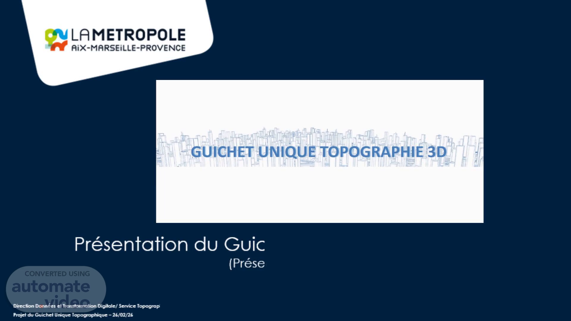 Présentation du Guichet Unique Topographique 3D (Présentation de cadrage).