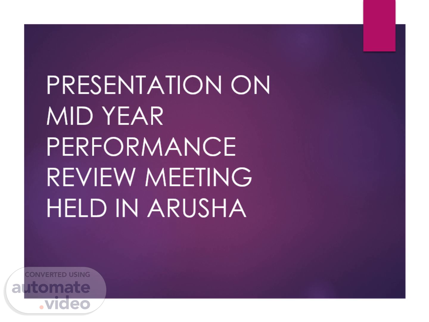 PRESENTATION ON MID YEAR PERFORMANCE REVIEW MEETING HELD IN ARUSHA.