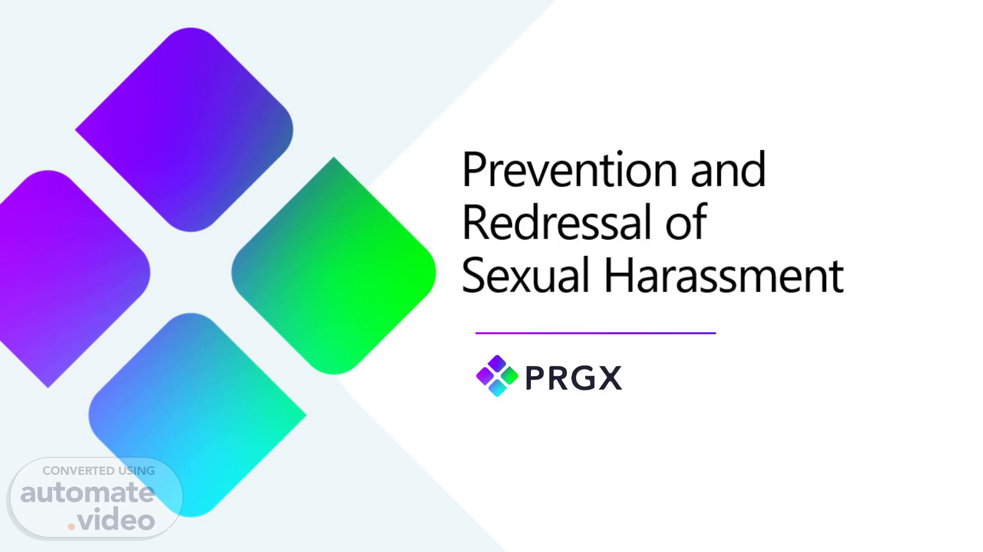 [Audio] Before we go ahead and deep dive understanding prevention and redressal of sexual Harassment, we would like to make you aware about our PRGX statement of intent. PRGX is committed to providing an environment free of unlawful harassment. This policy prohibits sexual harassment and harassment based on pregnancy, childbirth or related medical conditions, race, religious, creed, color, national origin and ancestry, physical or mental disability, medical condition, marital status, age, sexual orientation or any other basis. All such harassment is unlawful. And we say no to any kind of harassment and it is not tolerated..