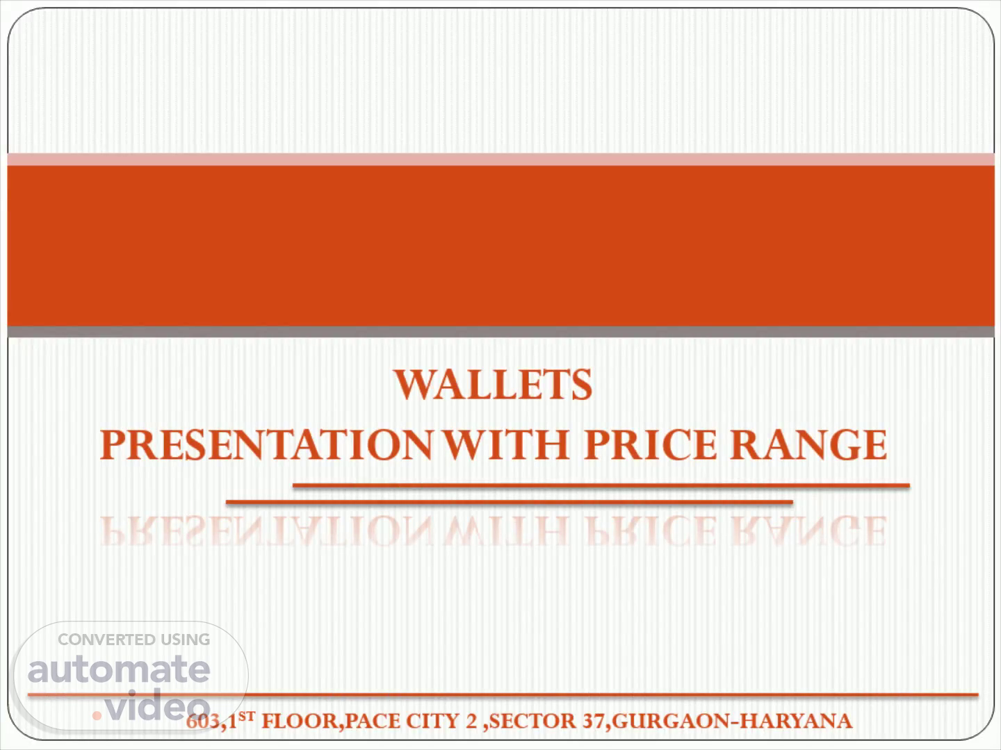 WALLETS PRESENTATION WITH PRICE RANGE. 603,1 ST FLOOR,PACE CITY 2 ,SECTOR 37,GURGAON-HARYANA.