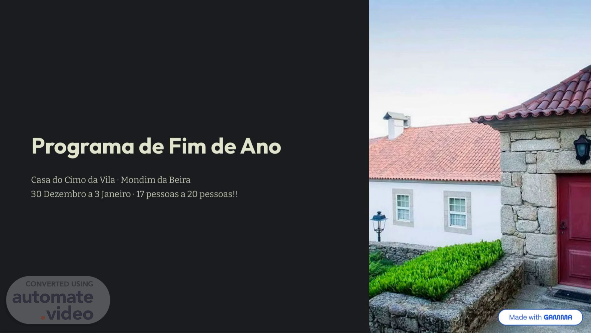 Programa de Fim de Ano Casa do Cimo da Vila · Mondim da Beira 30 Dezembro a 3 Janeiro · 17 pessoas a 20 pessoas!!.