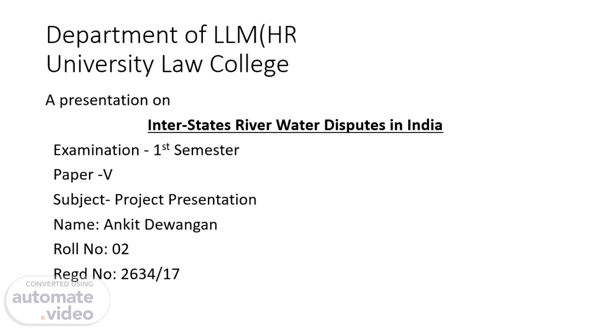 Department of LLM(HR) University Law College. A presentation on Inter-States River Water Disputes in India Examination - 1st Semester Paper -V Subject- Project Presentation Name: Ankit Dewangan Roll No: 02 Regd No: 2634/17.