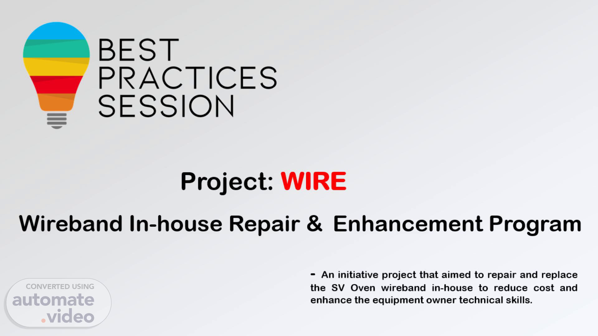 [Audio] Good day. We are from the Biscuit Plant and we are presenting our Best Practice Session. Project Title: Project WIRE: Wireband In-House Repair and Enhancement Program This initiative aims to repair and replace the SV Oven wireband in-house in order to reduce costs and enhance the technical skills of equipment owners..