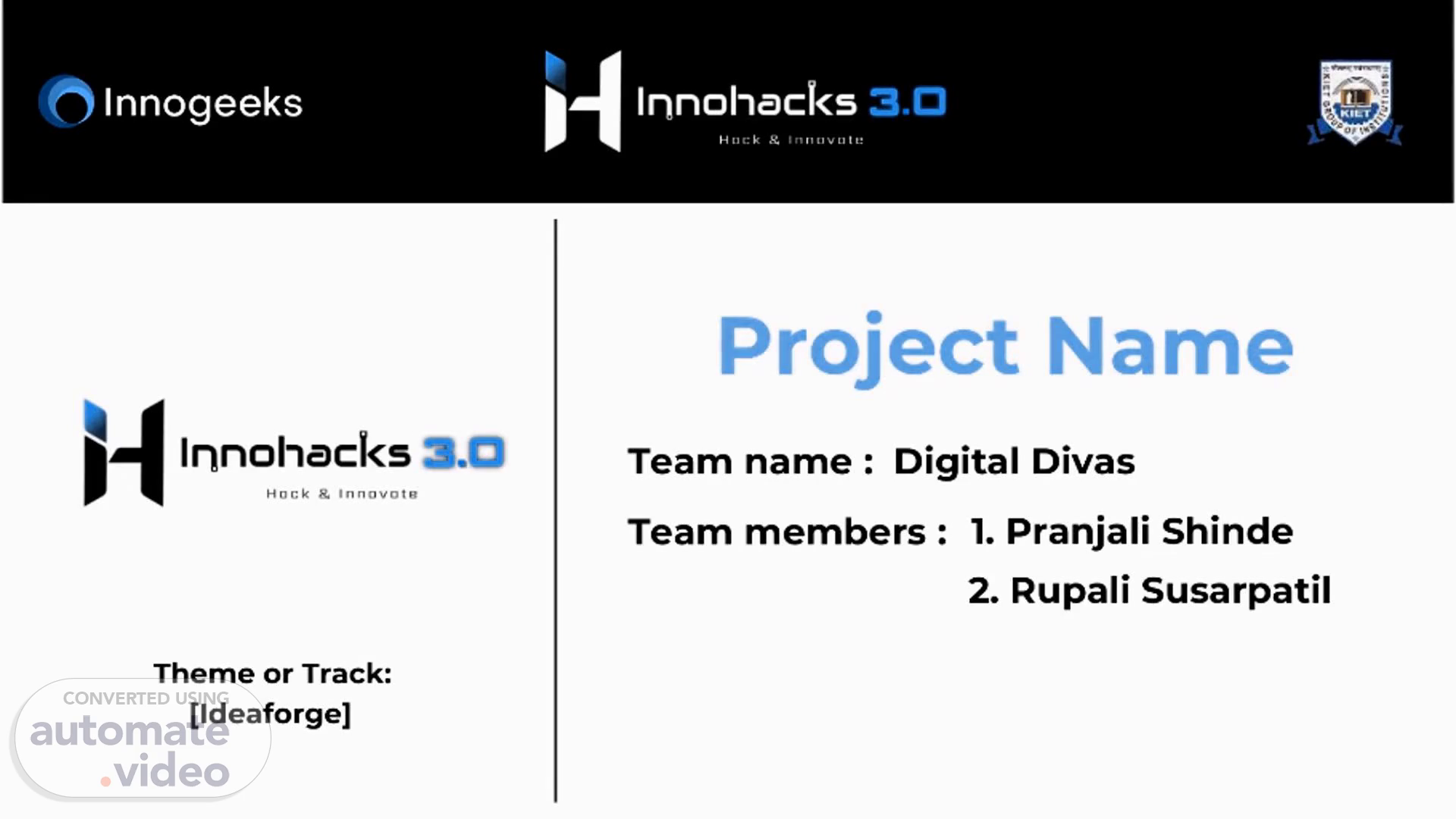 Project Name Team name : Digital Divas 2. Rupali Susarpatil Theme or Track: [Ideaforge] Team members : 1. Pranjali Shinde.