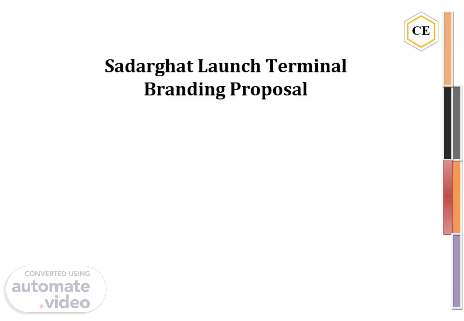 [Audio] The company Creative Enterprise has developed a comprehensive branding proposal for the Sadarghat Launch Terminal. The proposal includes signage, wayfinding, and marketing materials designed to enhance the overall image and customer experience of the terminal. The team at Creative Enterprise worked closely with the terminal's management to consider various aspects such as signage, wayfinding, and marketing materials to ensure consistency and coherence throughout the terminal. The goal of the proposal is to create a welcoming environment that reflects the values and mission of the terminal's management. The proposal aims to improve the aesthetic appeal of the terminal while contributing to its growth and development. The team at Creative Enterprise looks forward to implementing the proposal and bringing it to life. The implementation of the proposal is expected to be completed within a reasonable timeframe. The outcome of the proposal is expected to be positive, with improved customer satisfaction and increased business opportunities. The terminal's management is confident in the ability of Creative Enterprise to deliver high-quality results. The company is committed to meeting the needs of the terminal's management and stakeholders. The proposal is designed to meet the specific needs of the terminal's management and stakeholders. The team at Creative Enterprise is dedicated to delivering exceptional service and support. The company is committed to ongoing evaluation and improvement of the proposal. The terminal's management is grateful for the hard work and dedication of the team at Creative Enterprise. The team at Creative Enterprise is proud of the work they have done on the proposal. The company is looking forward to continuing to work with the terminal's management and stakeholders. The proposal is expected to have a lasting impact on the terminal's operations and reputation. The team at Creative Enterprise is excited about the opportunity to implement the proposal and make it a reality. The company is committed to ensuring that the proposal is implemented successfully. The terminal's management is confident in the ability of Creative Enterprise to deliver a successful implementation. The team at Creative Enterprise is dedicated to delivering high-quality results. The company is committed to ongoing evaluation and improvement of the proposal. The terminal's management is grateful for the expertise and knowledge of the team at Creative Enterprise. The team at Creative Enterprise is experienced in delivering high-quality results. The company is committed to meeting the needs of the terminal's management and stakeholders. The proposal is designed to meet the specific needs of the terminal's management and stakeholders. The team at Creative Enterprise is dedicated to delivering exceptional service and support. The company is committed to ongoing evaluation and improvement of the proposal. The terminal's management is grateful for the hard work and dedication of the team at Creative Enterprise. The team at Creative Enterprise is proud of the work they have done on the proposal. The company is looking forward to continuing to work with the terminal's management and stakeholders. The proposal is expected to have a lasting impact on the terminal's operations and reputation. The team at Creative Enterprise is excited about the opportunity to implement the proposal and make it a reality. The company is committed to ensuring that the proposal is implemented successfully. The terminal's management is confident in the ability of Creative Enterprise to deliver a successful implementation. The team at Creative Enterprise is dedicated to delivering high-quality results. The company is committed to ongoing evaluation and improvement of the proposal. The terminal's management is grateful for the expertise and knowledge of the team at Creative Enterprise. The team at Creative Enterprise is experienced in delivering high-quality results. The company is committed to.