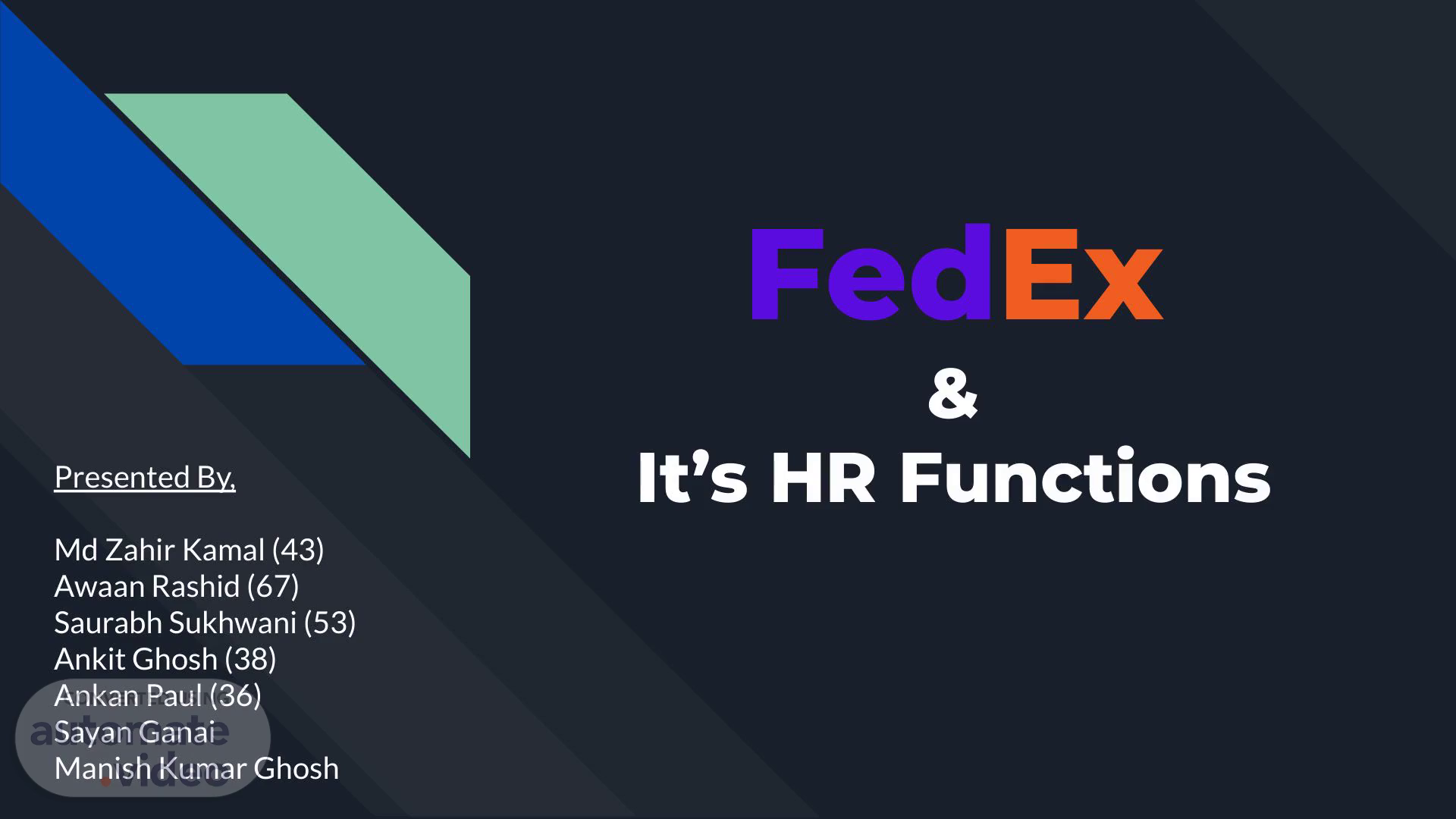 [Audio] Good morning everyone! Today we will be presenting to you an informative and interesting overview of the HR functions offered by FedEx. We will detail how the company connects talent to opportunity plus much more. Let's get started!.