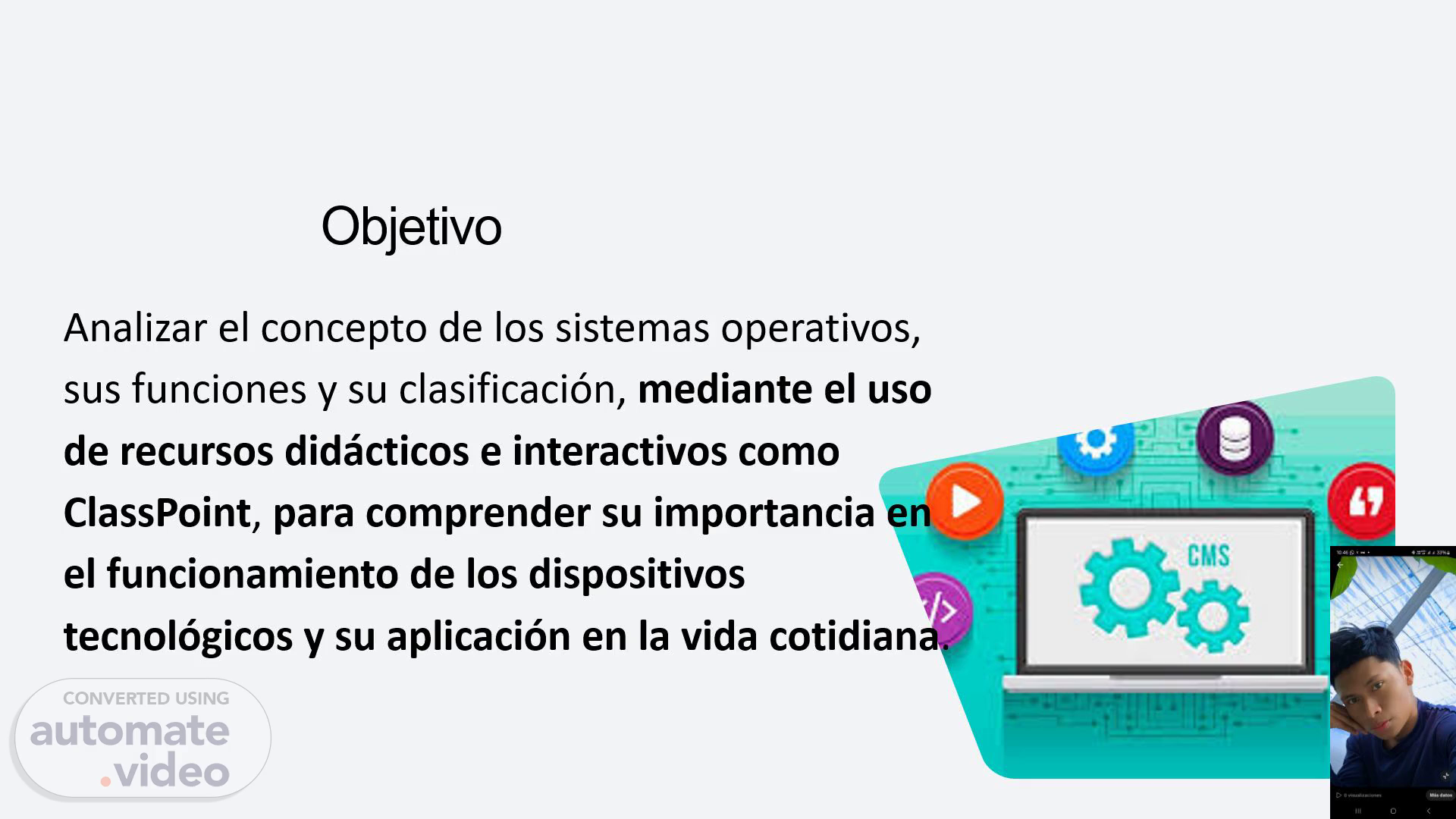 Objetivo. Analizar el concepto de los sistemas operativos, sus funciones y su clasificación, mediante el uso de recursos didácticos e interactivos como ClassPoint, para comprender su importancia en el funcionamiento de los dispositivos tecnológicos y su aplicación en la vida cotidiana..