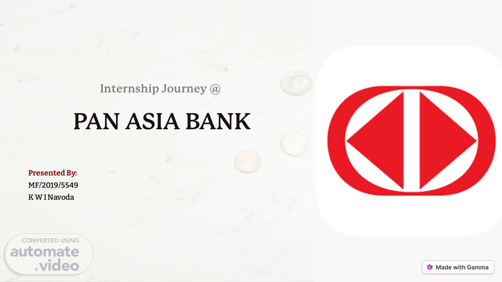 Internship Journey @ PAN ASIA BANK Presented By: MF/2019/5549 K W I Navoda.