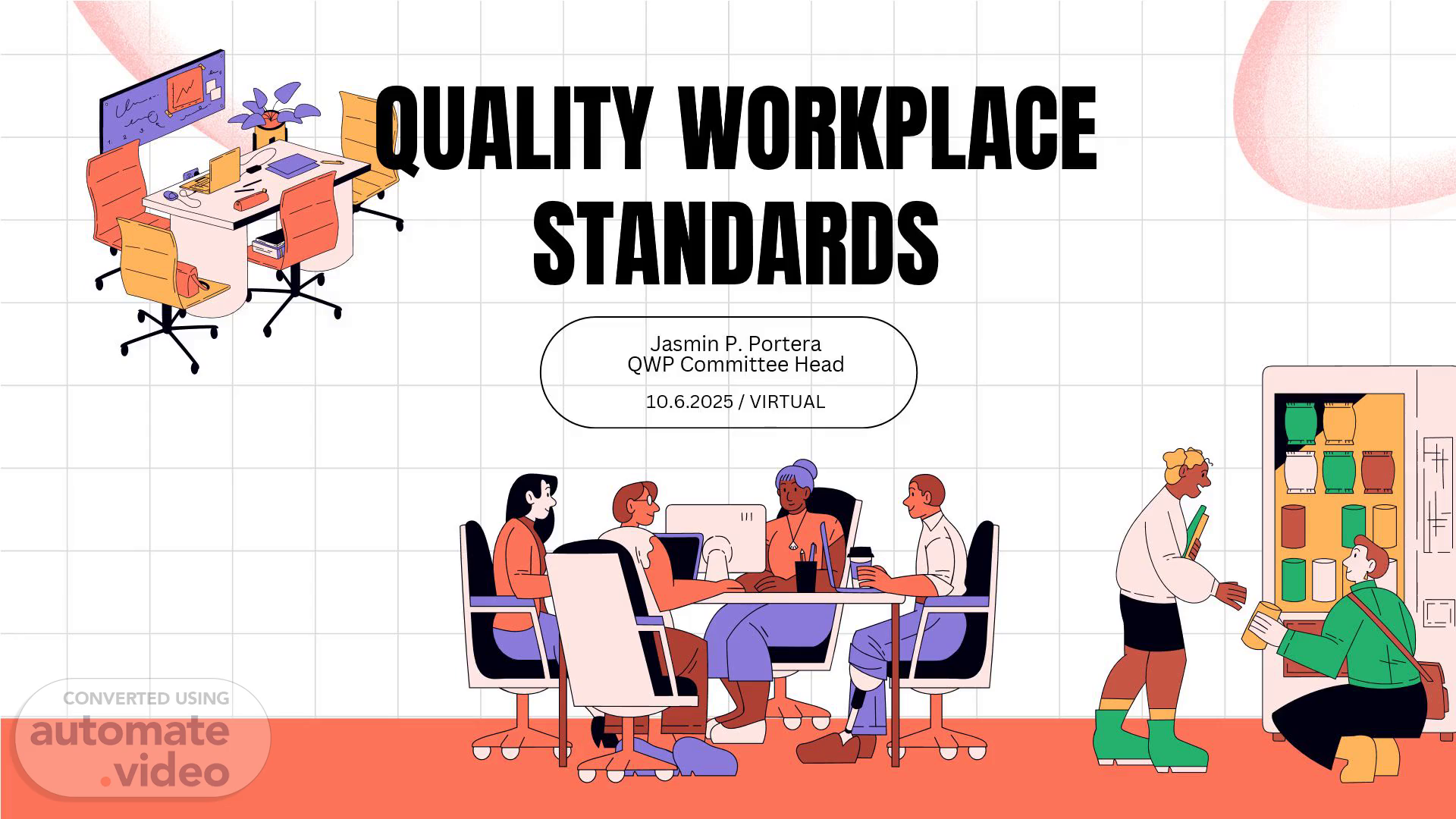 [Audio] QUALITY WORKPLACE STANDARDS. QUALITY WORKPLACE STANDARDS Jasmin P. Portera QWP Committee Head 10.6.2025 / VIRTUAL.