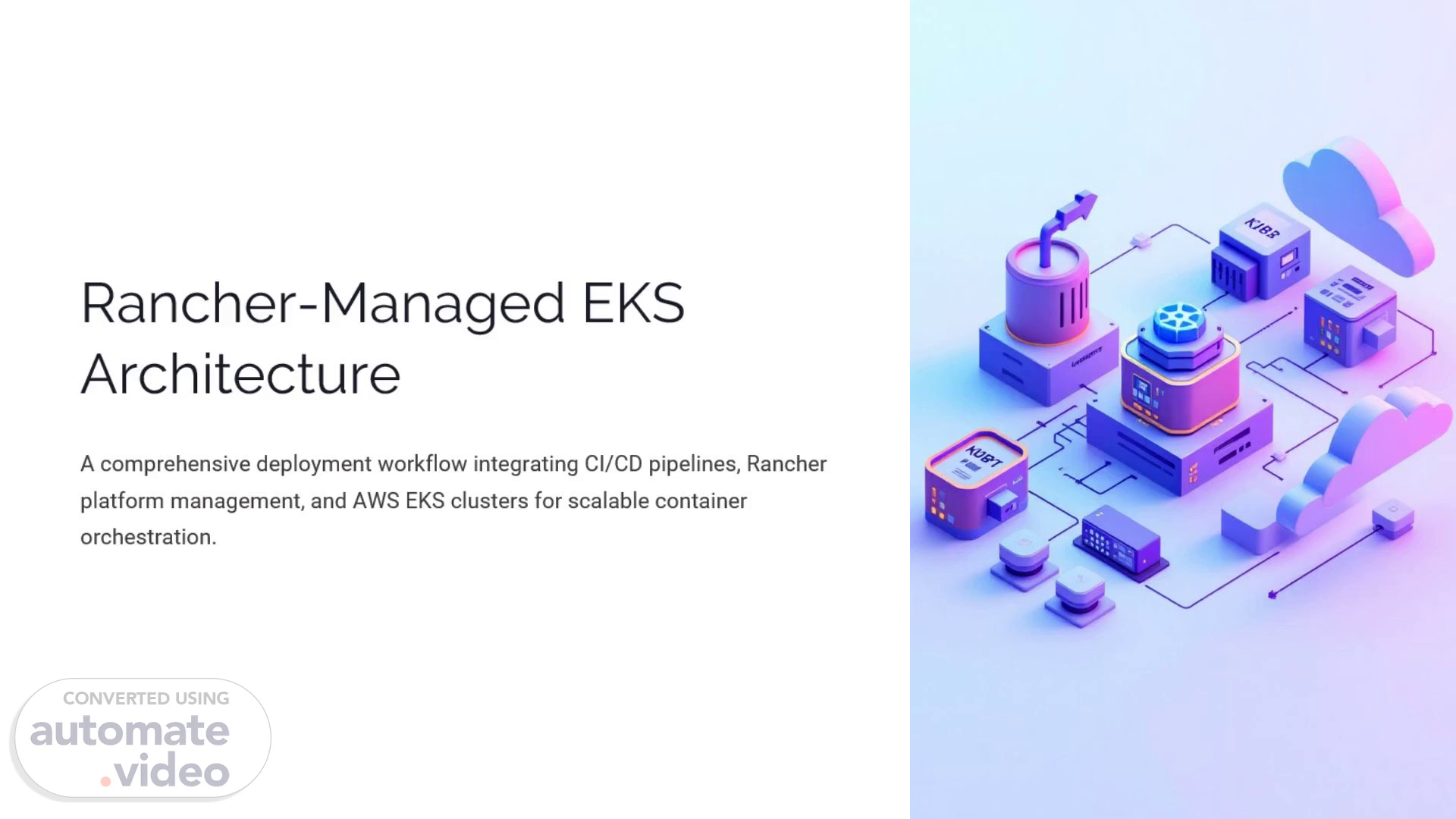 [Audio] Rancher-Managed EKS Architecture A comprehensive deployment workflow integrating CI/CD pipelines, Rancher platform management, and AWS EKS clusters for scalable container orchestration. We're introducing the Rancher-Managed EKS Architecture—the blueprint for highly scalable, governed container orchestration. This solution seamlessly integrates continuous deployment with the robust framework of AWS EKS.