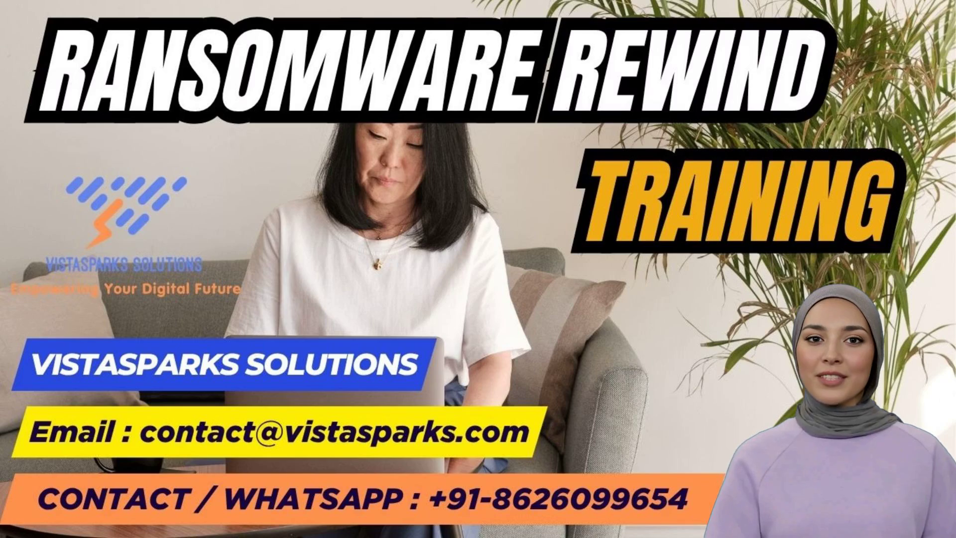 [Virtual Presenter][Virtual Presenter]Upgrade your cybersecurity skills with Ransomware Rewind Training by Vistasparks Solutions. Learn ransomware basics in Module 1, attack methods in Module 2, detection techniques in Module 3, incident response in Module 4, recovery planning in Module 5, and hands-on case studies in Module 6. Stay prepared and protect your systems from modern cyber threats. Contact on mentioned whatsapp number and email id to know more about our services.