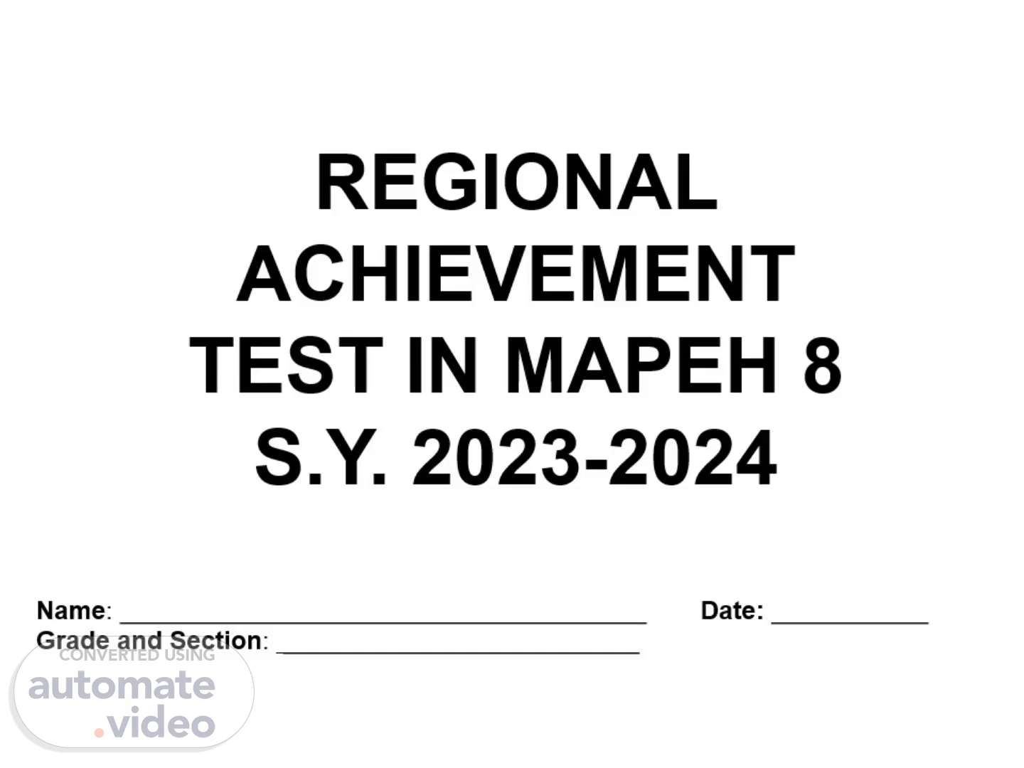 [Audio] REGIONAL ACHIEVEMENT TEST IN MAPEH 8 S.Y. 2023-2024 Name: _____________________________________ Date: ___________ Grade and Section: _________________________.
