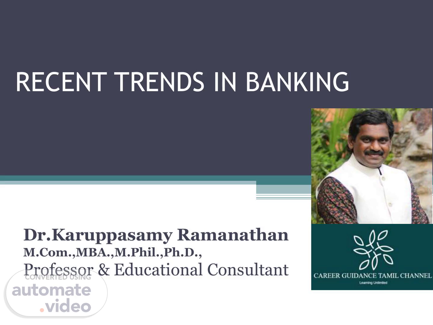 RECENT TRENDS IN BANKING Dr.Karuppasamy Ramanathan M.Com.,MBA.,M.Phil.,Ph.D., Professor & Educational Consultant.