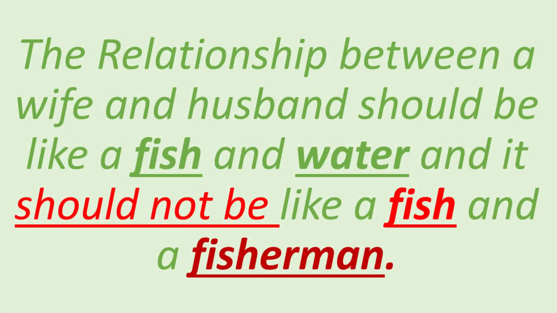 The Relationship between a wife and husband should be like a fish and water and it should not be like a fish and a fisherman.
