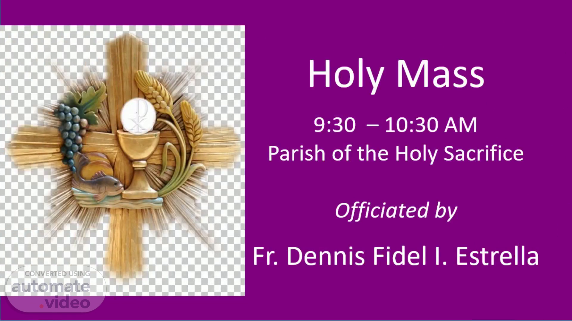 Holy Mass 9:30 – 10:30 AM Parish of the Holy Sacrifice Officiated by Fr. Dennis Fidel I. Estrella