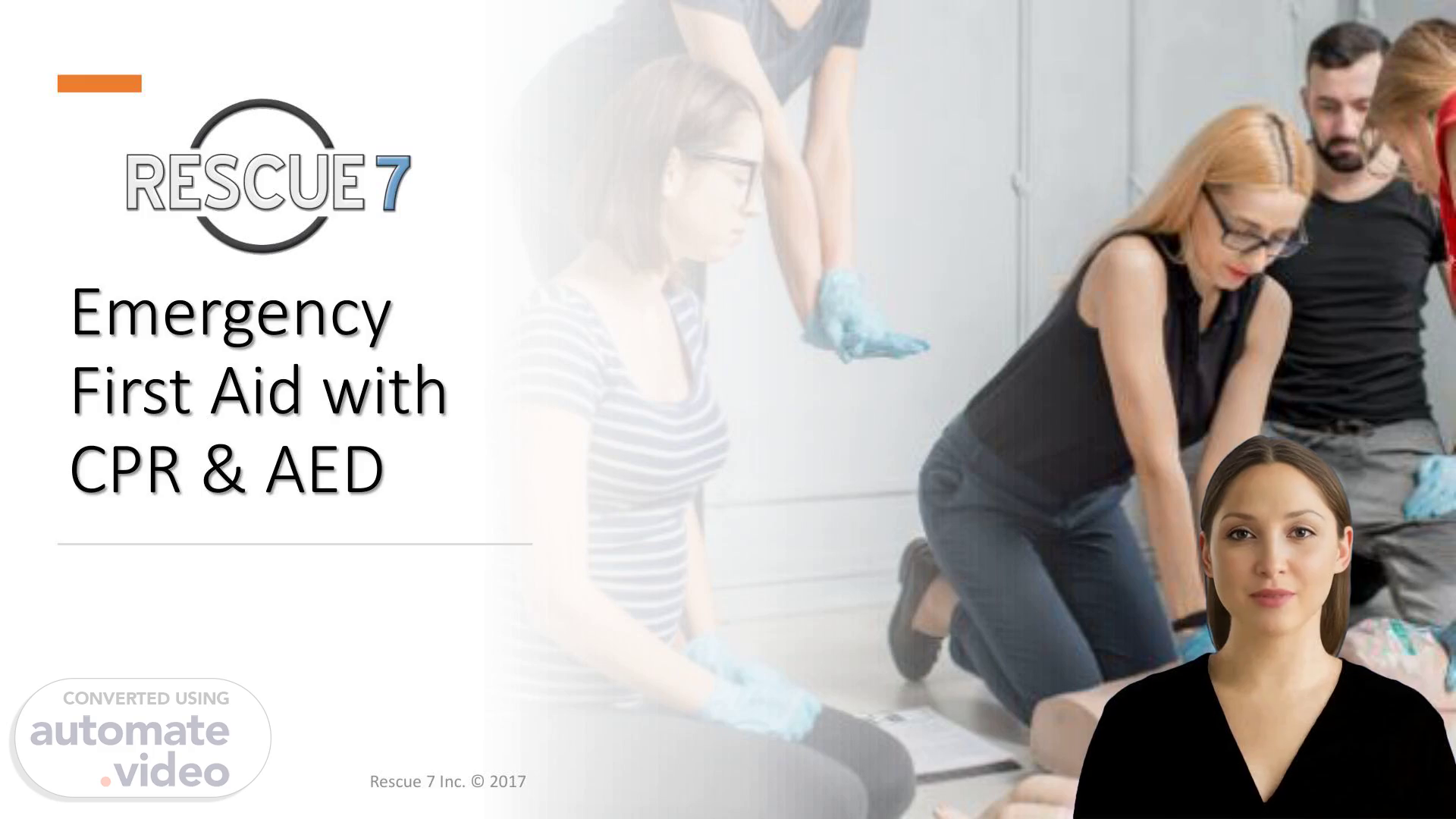 [Audio] We are currently on slide 32 out of 50 in our Emergency First Aid with CPR & A-E-D Rescue 7 Inc. presentation..