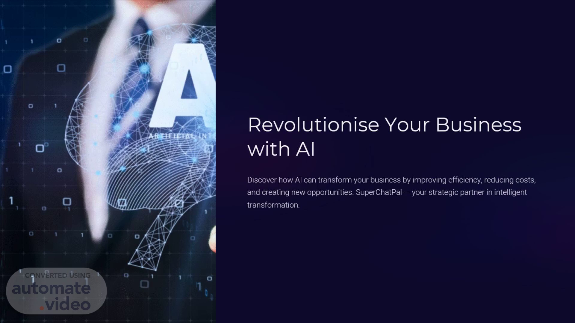[Audio] Revolutionise Your Business with AI Discover how AI can transform your business by improving efficiency, reducing costs, and creating new opportunities. SuperChatPal — your strategic partner in intelligent transformation..