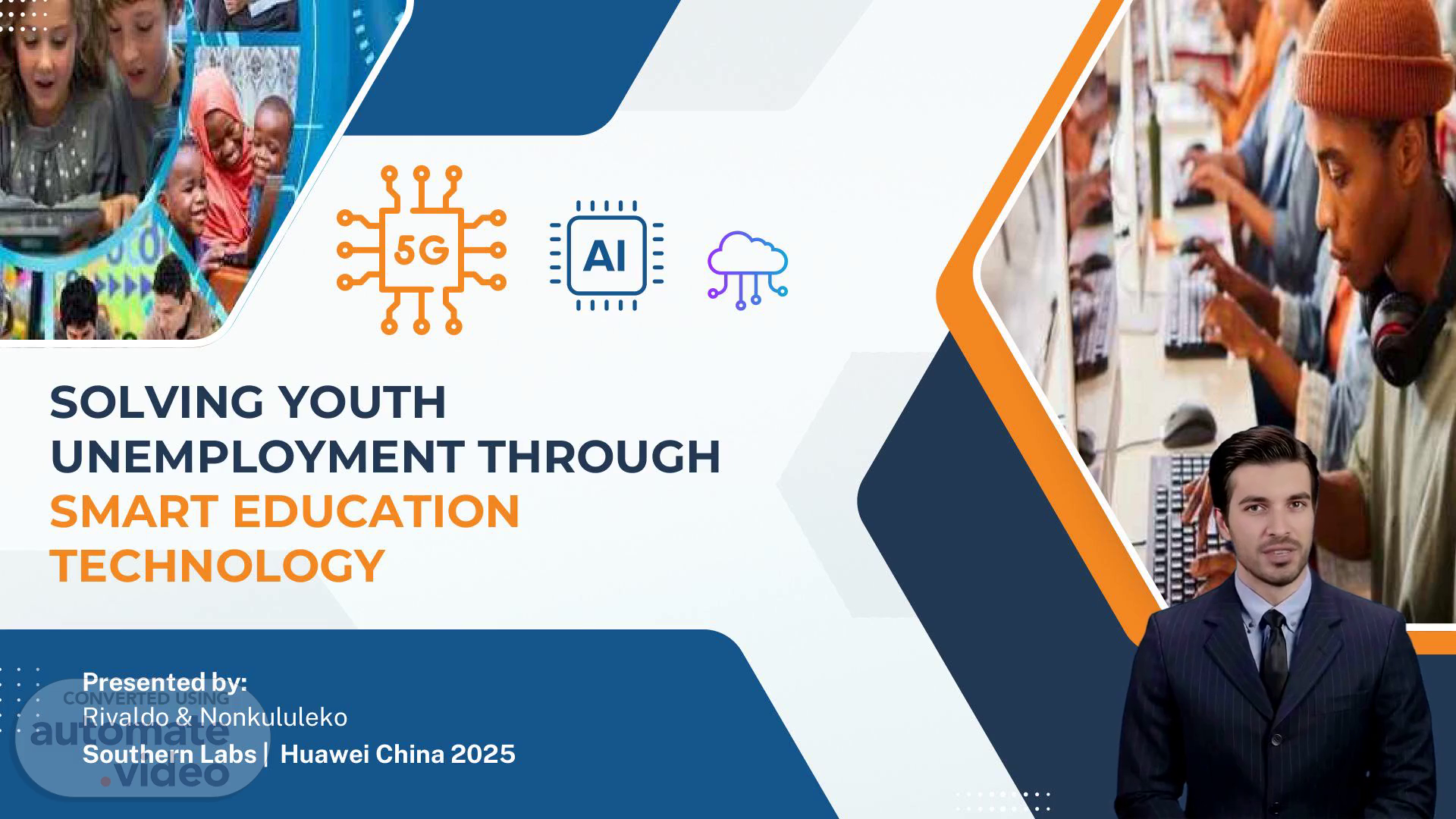 [Virtual Presenter] This is a training video on the use of smart education technology. In today's session, we will be discussing how this technology can help address the problem of youth unemployment. Our presenters, Rivaldo and Nonkululeko, will be sharing their knowledge and insights on this topic. So, please take a seat, and get ready to learn about the efforts of Southern Labs and Huawei China to create a brighter future for our youth. Let's get started!.