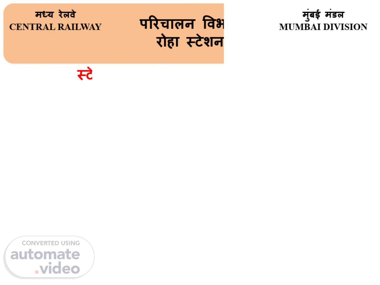 परिचालन विभाग रोहा स्टेशन. मध्य रेलवे CENTRAL RAILWAY.