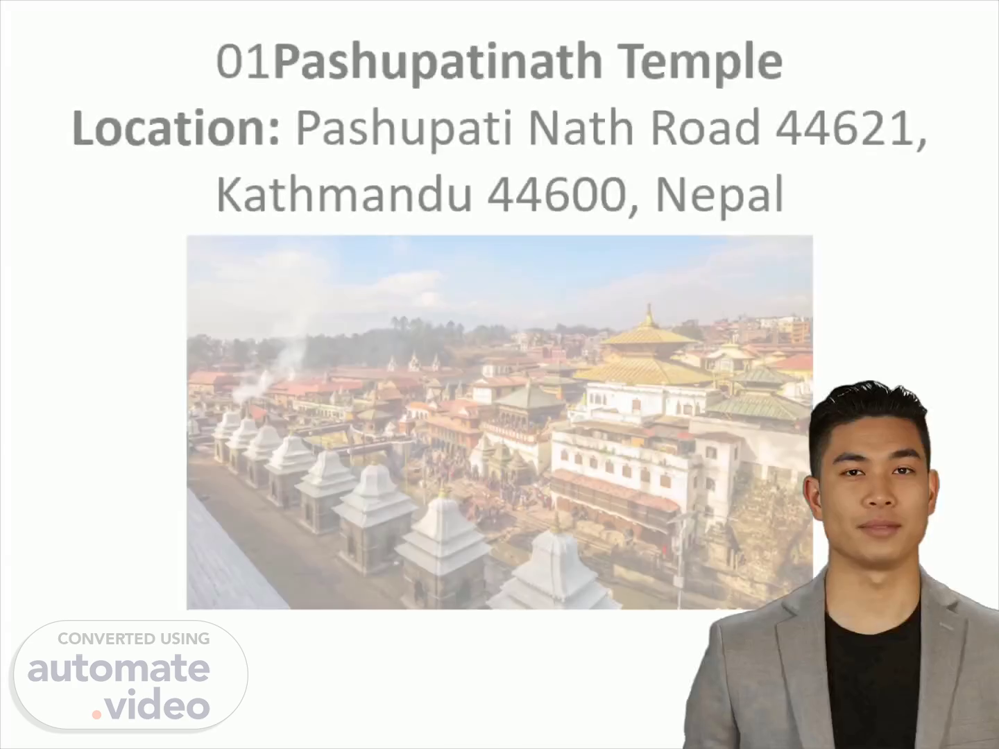 [Virtual Presenter] Welcome to the presentation about the 25 destinations for tourists in Nepal. Our first stop is Pashupatinath Temple. Situated in Kathmandu, this temple is renowned for its exquisite architecture and is a much-visited site for tourists. We hope you have a great time exploring all the fantastic places that Nepal offers!.