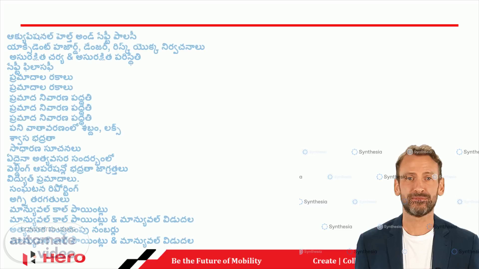 . [Virtual Presenter] హలో ప్రియమైనది, ఈ కంపెనీ యొక్క స్వతంత్ర ఆక్యుపేషనల్ హెల్త్ అండ్ సేఫ్టీ పాలసీ యాక్సిడెంట్ హజార్డ్, డేంజర్, రిస్క్ యొక్క నిర్వచనాలు అసురక్షిత చర్య & అసురక్షిత పరిస్థితి సేఫ్టీ ఫిలాసఫీ ప్రమాదాల రకాలు, వెల్డింగ్ ఆపరేషన్లో భద్రతా జాగ్రత్తలు విద్యుత్ ప్రమాదాలు వివరించిన ప్రస్తుత ప్రదర్శనను కొరకు నేను మీకు ఊహ్సాందర్గా తెలిపించారు. ఆపరేషన్ పూర్తి చేసేందుకు ముందు లాంటి ప్రశ్నలు ఉన్.