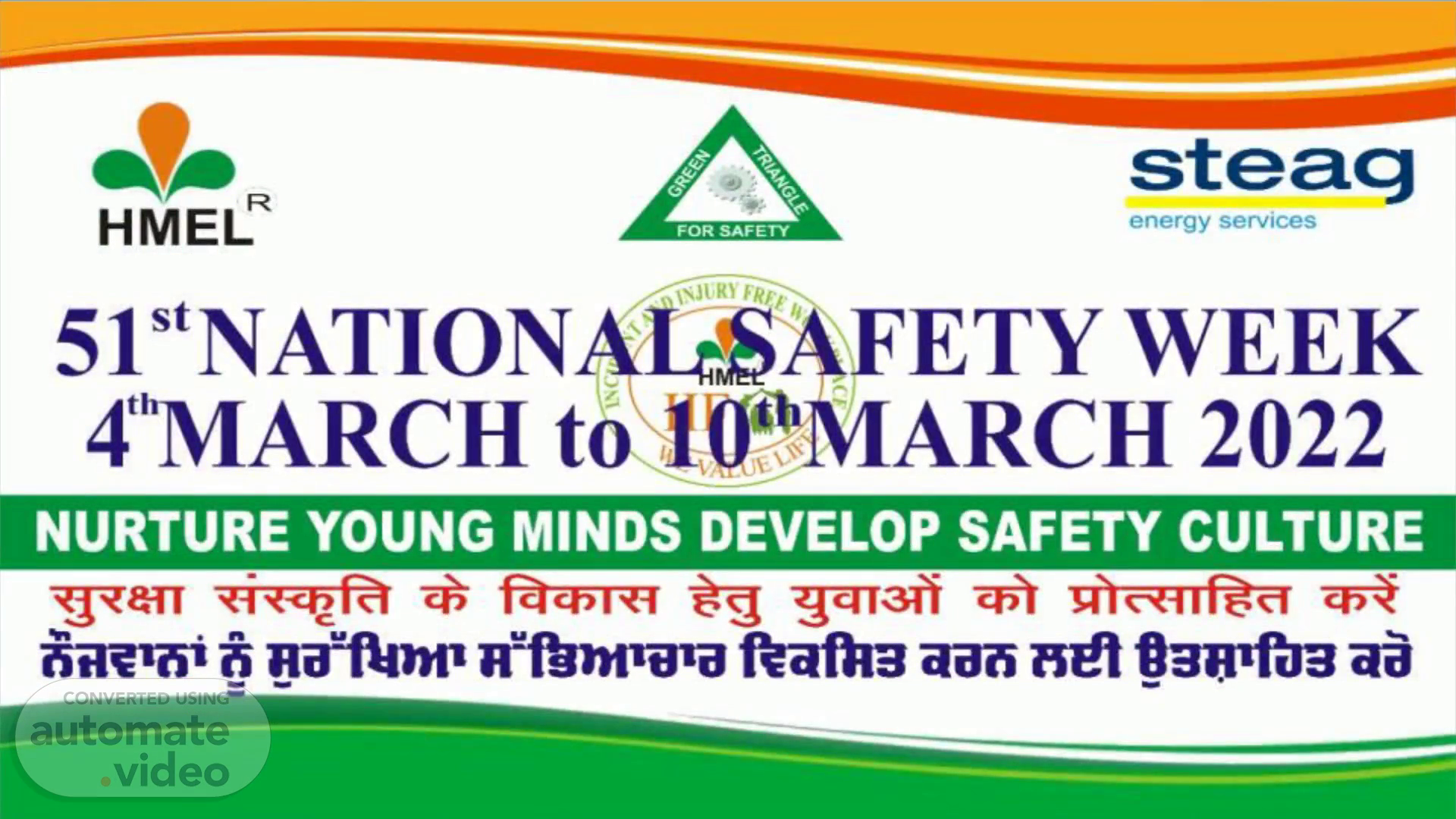 HMEL FOR SAFETY steag energy services 51StNATIONALSAFETY WEEK 4thMARCH to@MARCH 2022 NURTURE YOUNG MINDS DEVELOP SAFETY CULTURE aaö @3R1fb3 aä.