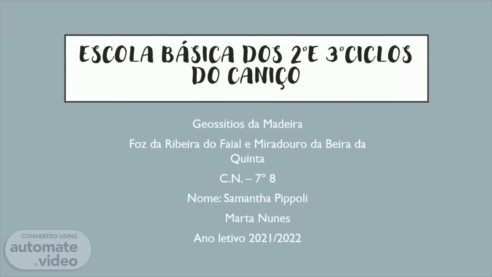 Escola básica dos 2°e 3°ciclos do caniço. Geossítios da Madeira Foz da Ribeira do Faial e Miradouro da Beira da Quinta C.N. – 7° 8 Nome: Samantha Pippoli Marta Nunes Ano letivo 2021/2022.