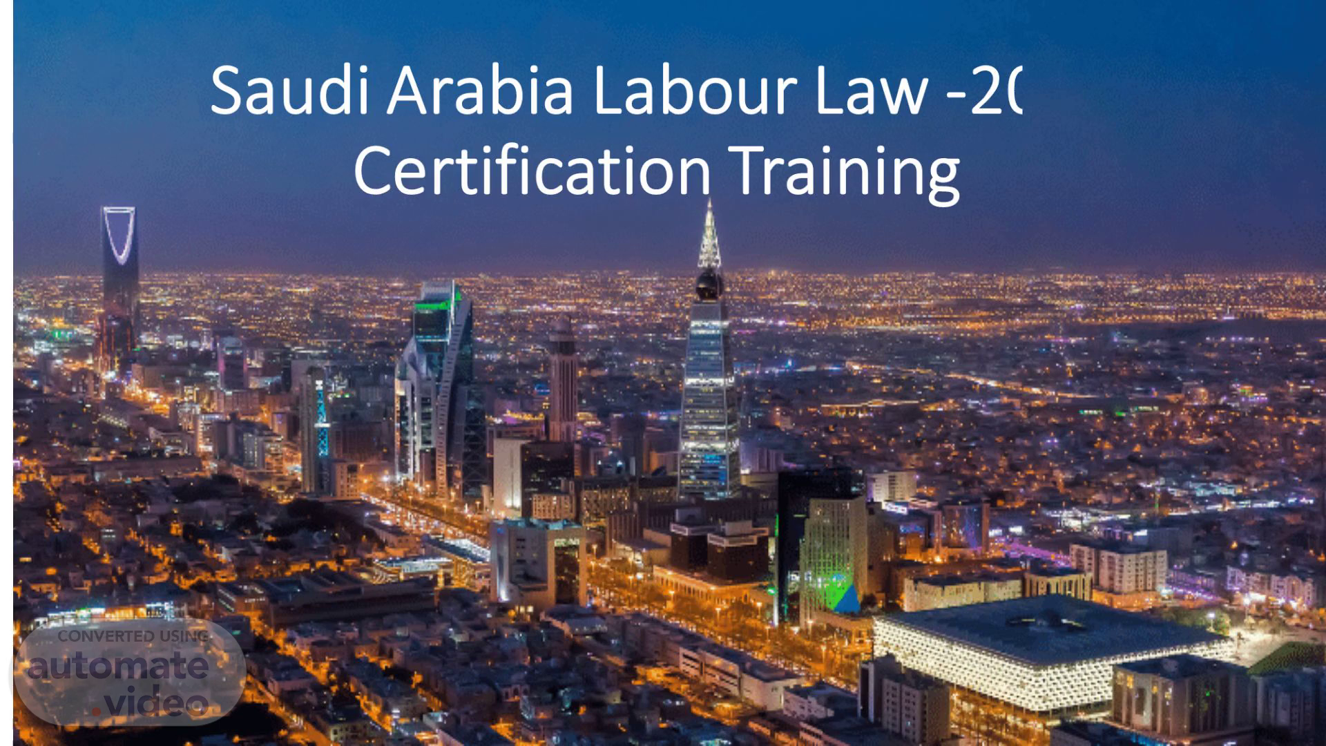 [Audio] Our presentation will provide information on the historical development contemporary Saudi Labour Law employment contracts disability rights recruitment regulations probation period work contracts termination leave wages working hours annual vacations Hajj leaves leave for exams unpaid leave sick leave part-time work protection against occupational hazards high risk firms major accidents regulations of major hazards & work injuries medical & social services working in remote locations employment of working women marine work contract labor dispute settlement & compliance and introduction to key H R M (S-A-P--) Technology. We will also provide hands-on training that focuses on Saudi HR Operations briefings on relevant ministries & programs including G-O-S-I misa CoC G-A-Z-T MoC and Muqeem Visa Portal and program review & post assessment..