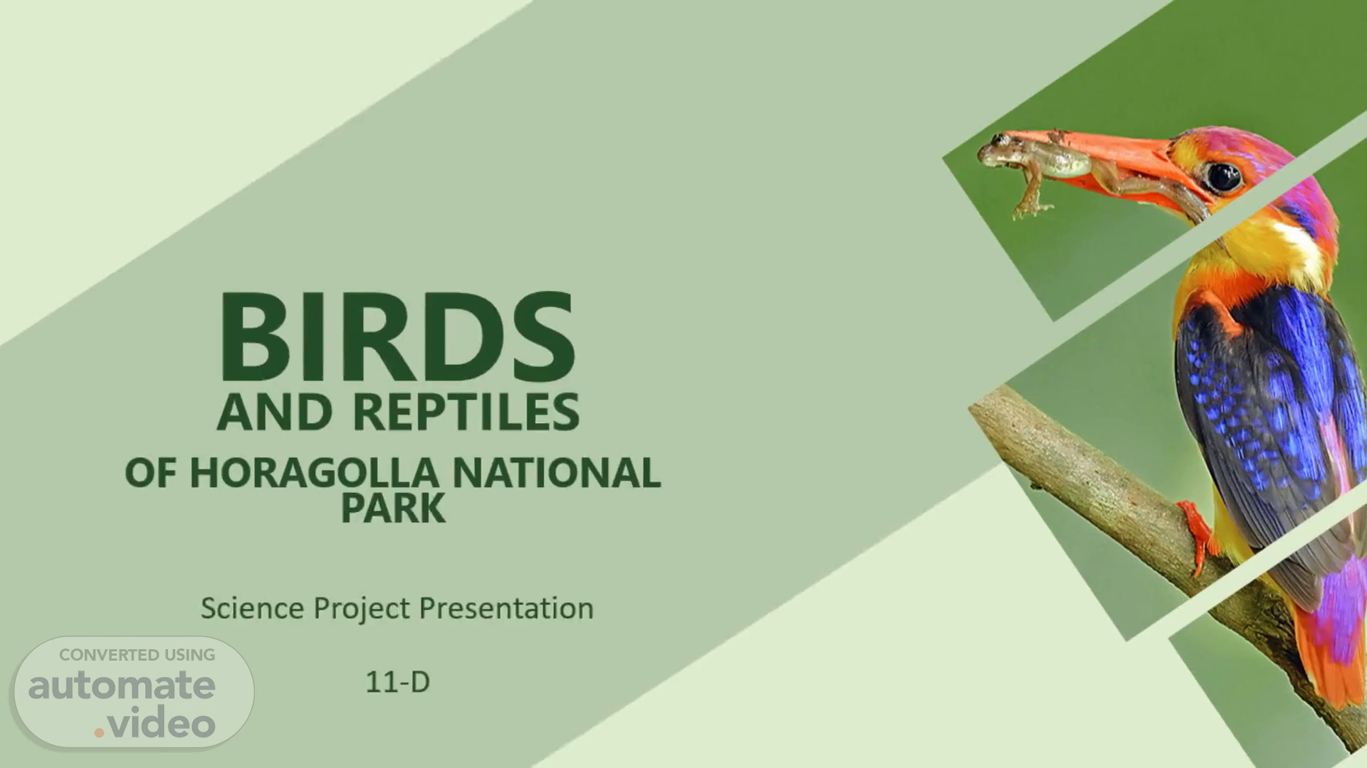 [Audio] Welcome everyone, this presentation focuses on our science project regarding the bird and reptile species of Horagolla National Park in Sri Lanka. Our aim is to gain a better understanding of their behavior and habitat through study and observation, ultimately helping to preserve the park's natural balance. Let's now embark on a journey into the captivating world of these extraordinary creatures..
