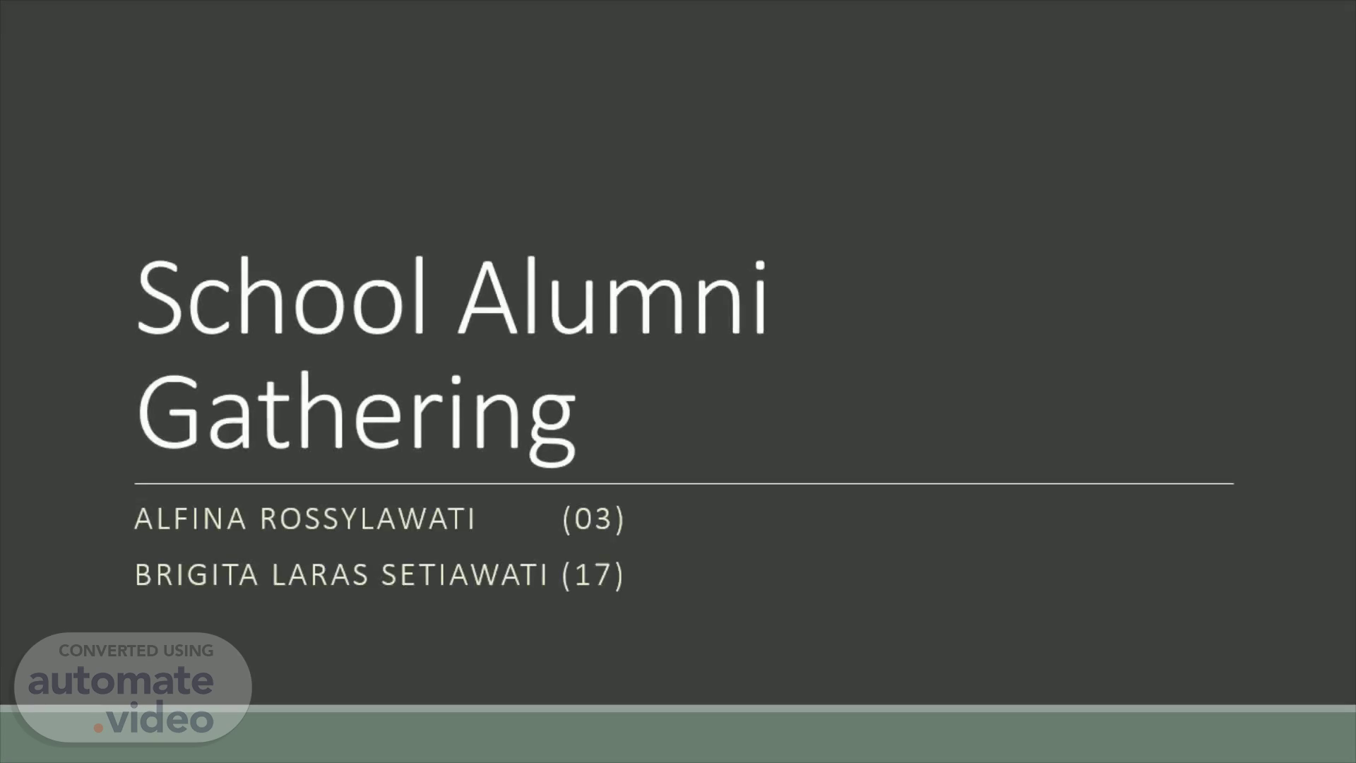 School Alumni Gathering. Alfina Rossylawati (03) Brigita laras setiawati (17).