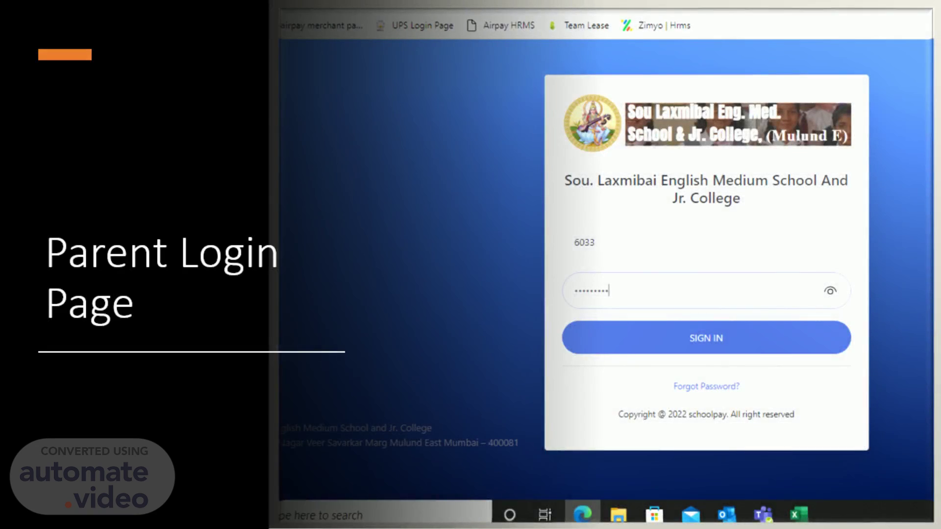 Parent Login Page. Graphical user interface application Description automatically generated.