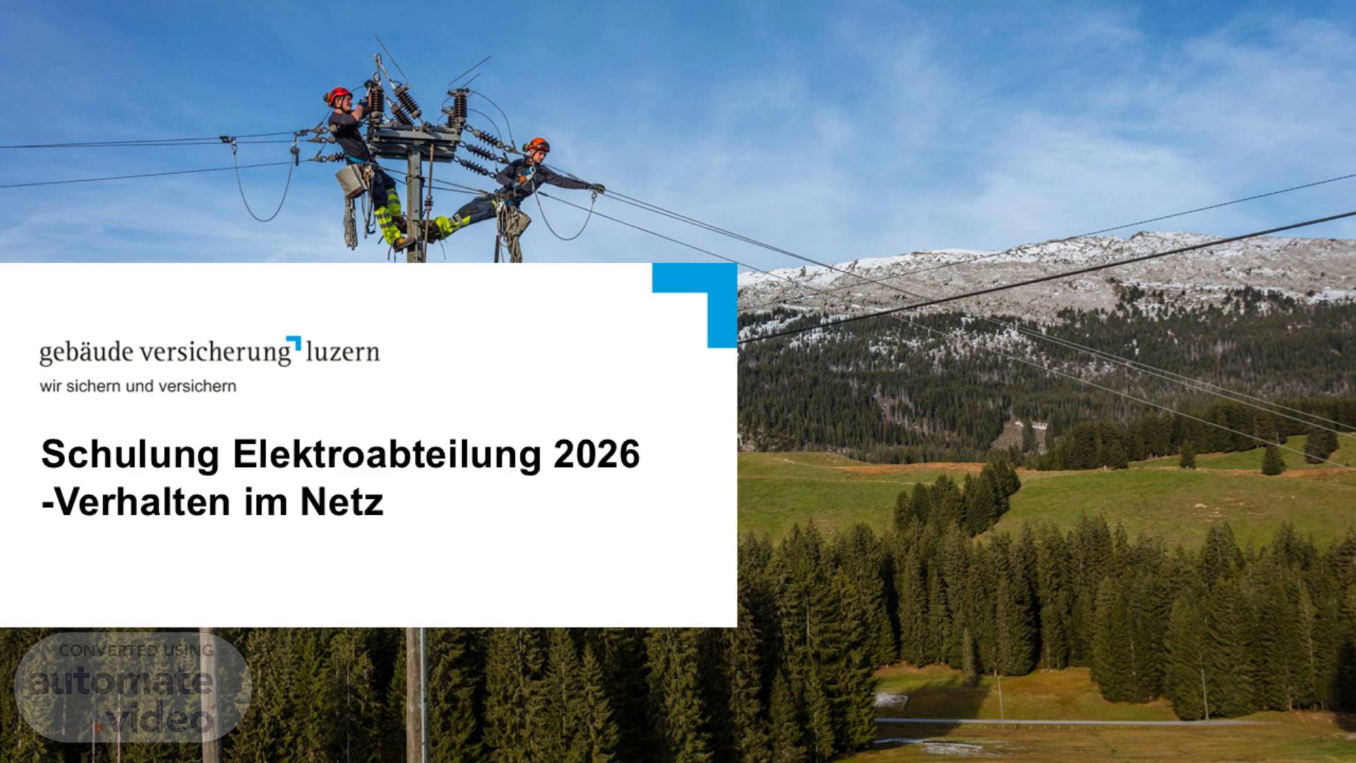[Audio] Schulung wird Feuerwehr Intern durch den Chef Elektro oder sein Stv. Durchgeführt (Kurs WBK Chef Elektro oder EFK Chef Elektro) Bestätigung Diese muss von jedem AdF mit Unterschrift beschäftigt werden das er folgende Kurse besucht und verstanden hat, dass er sich durch diese Ausbildung in der Lage fühlt seine Funktion als AdF der Elektroabteilung sicher auszuführen. Verhalten in Anlagen Gültiger BLS/AED Kurs oder Adäquate Ausbildung Die Feuerwehr Interne Jährliche Schulung Fachkurs Elektrodienst Schlüssel Es gibt durch die Feuerwehr keine Persönliche Schlüssel der EVUs mehr Meldepflicht Übungen können pro Abend und Gemeinde Angemeldet werden. Freischaltungen (NS) dürfen nur im Einsatz durchgeführt werden und sind umgehend mit der zuständigen Leitstelle zu koordinieren..