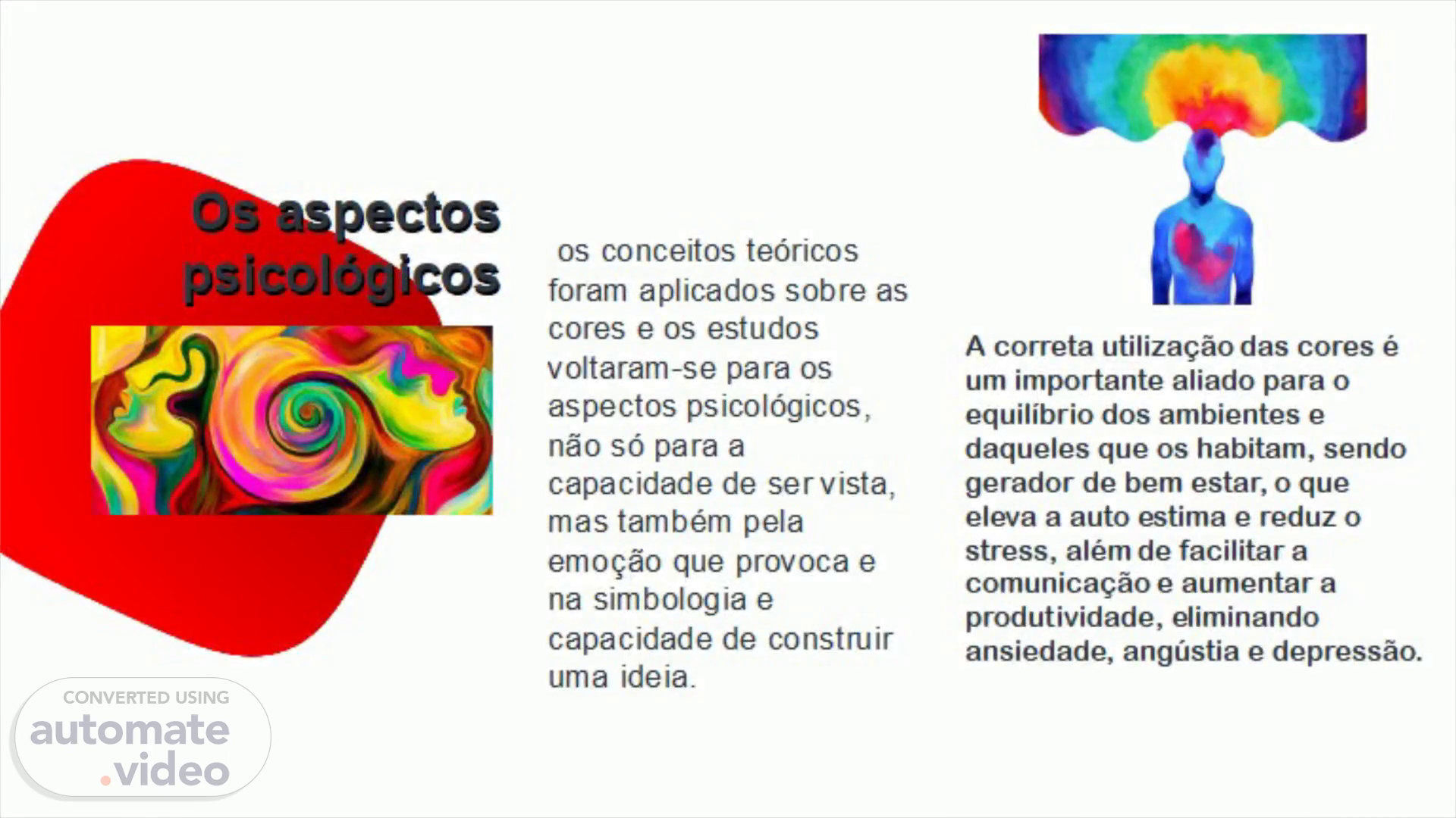 ectos pgjcruJru- os conceitos teöricos foram aplicados sobre as cores e os estudos voltaram-se para os aspectos psicolögicos, näo Sö para a capacidade de servista, mas também pela emoqäo que provoca e na simbologia e capacidade de construir uma ideia. A correta utilizaqäo das cores é um importante aliado para o equilibrio dos ambientes e daqueles que os habitam, sendo gerador de bem estar, o que eleva a auto estima e reduz o stress, além de facilitar a comunicaqäo e aumentar a produtividade, eliminando ansiedade, angüstia e depressäo..