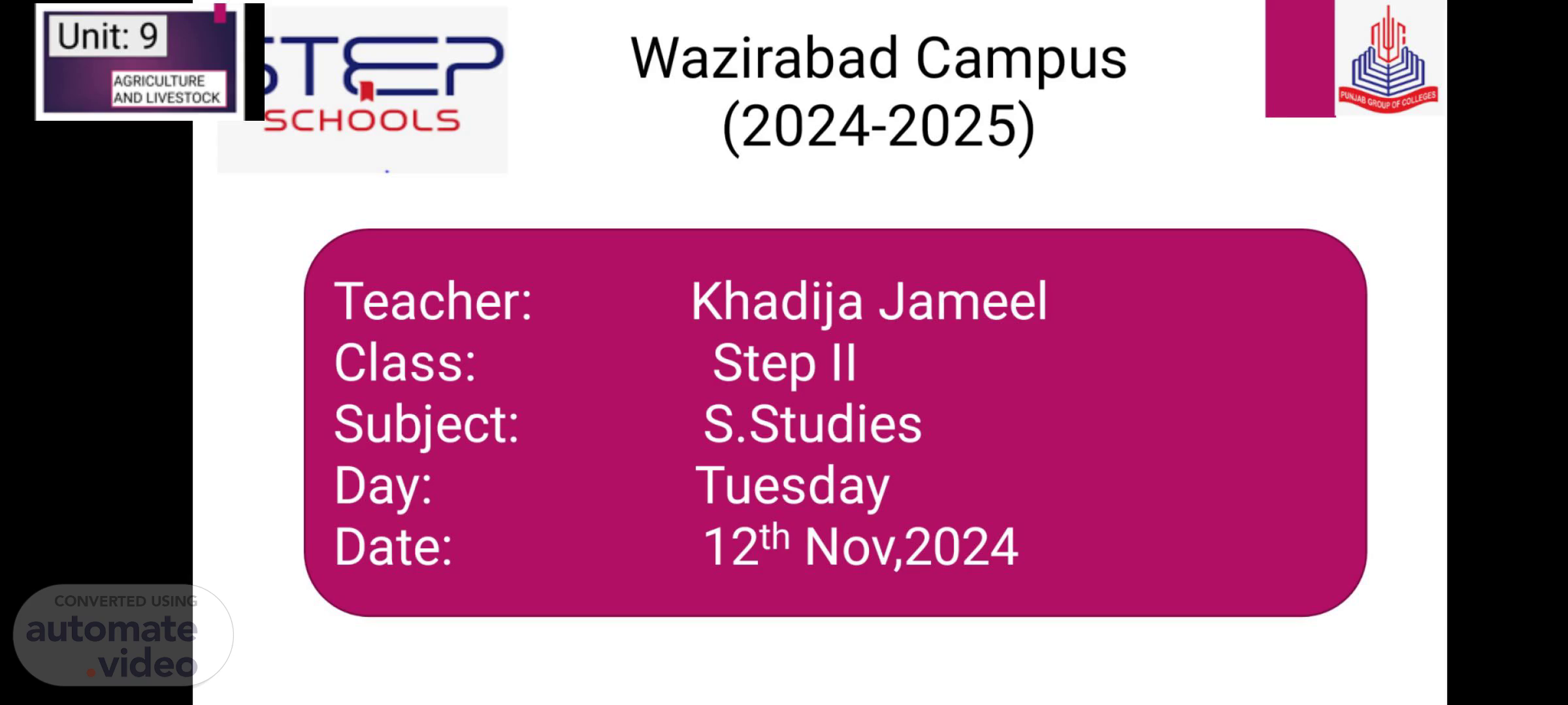 SCHOOLS Teacher: Class: Subject: Day: Date: Wazirabad Campus (2024-2025) Khadija Jameel Step II S.Studies Tuesday 1 Nov,2024.