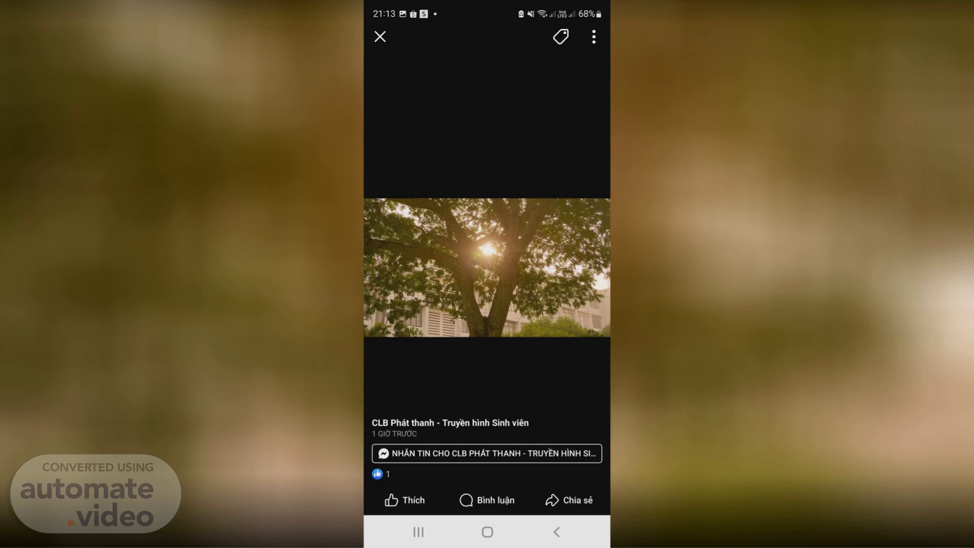 21:13 • e 68%" CLB Phåt thanh - hinh Sinh vién 1 Gld TRIJdC NHÅN TIN CHO CLB PHÅT THANH - TRUYÉN HiNH Sl„. Thich Binh luän Chia sé.