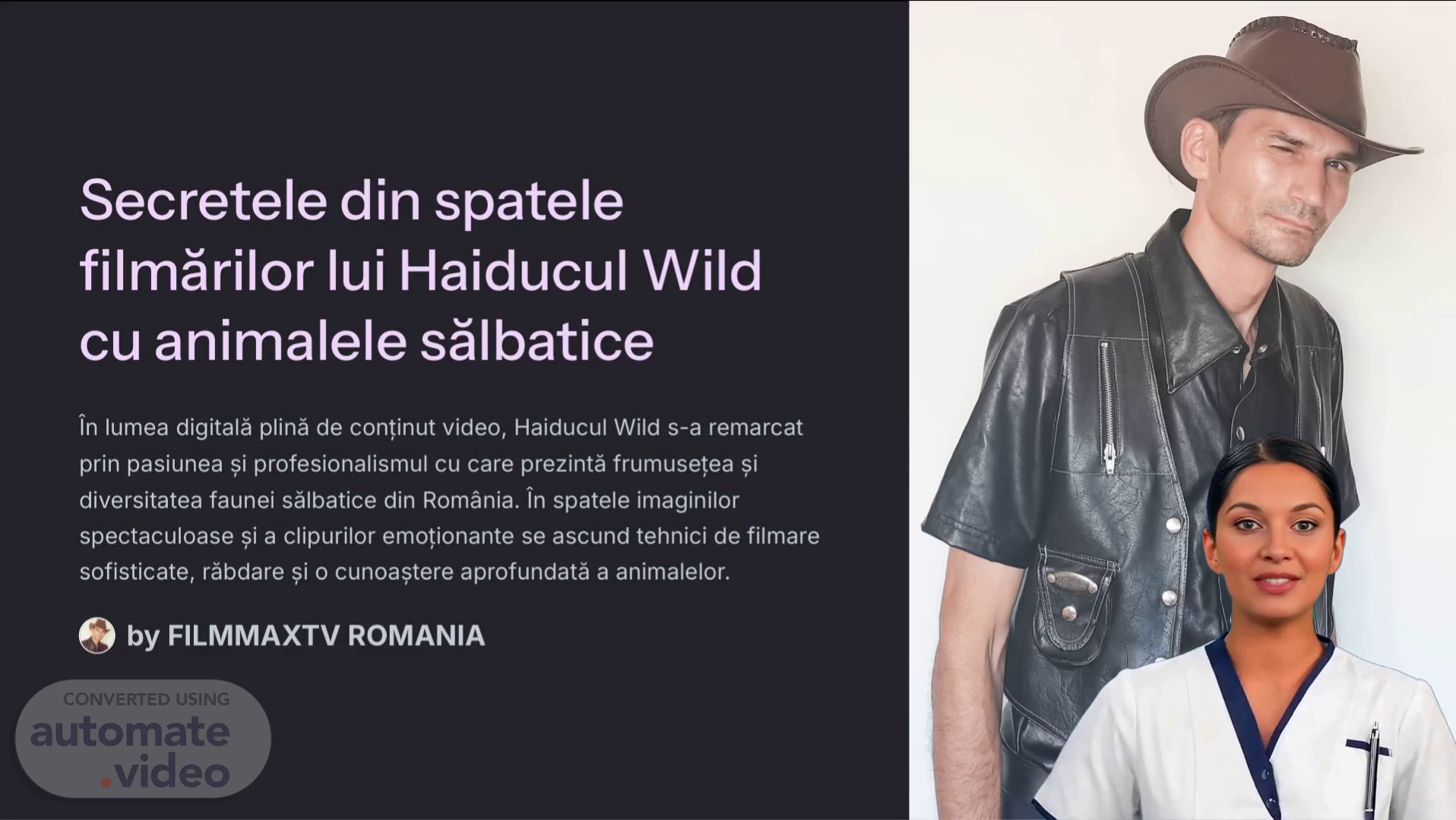 [Virtual Presenter] Într-o lume plină de conținut video, Haiducul Wild s-a remarcat prin pasiunea și profesionalismul său în prezentarea frumuseții și diversității faunei sălbatice din România. Puțini știu însă ce se află în spatele acestor înregistrări spectaculoase și emoționante. Astăzi, ne vom adânci în secretele din spatele filmărilor lui Haiducul Wild cu animale sălbatice. Vom descoperi tehnici de filmare sofisticate, răbdare și o cunoaștere aprofundată a acestor creaturi fascinante. Toate acestea stau la baza clipurilor impresionante pe care Haiducul Wild le-a filmat. Așadar, stai confortabil și pregătește-te să afli mai multe despre latura mistică și fermecătoare a sălbăticiei din România. Bine ați venit la primul curs din seria FILMMAXTV ROMANIA despre Haiducul Wild și secretele lui în filmarea animalelor sălbatice..