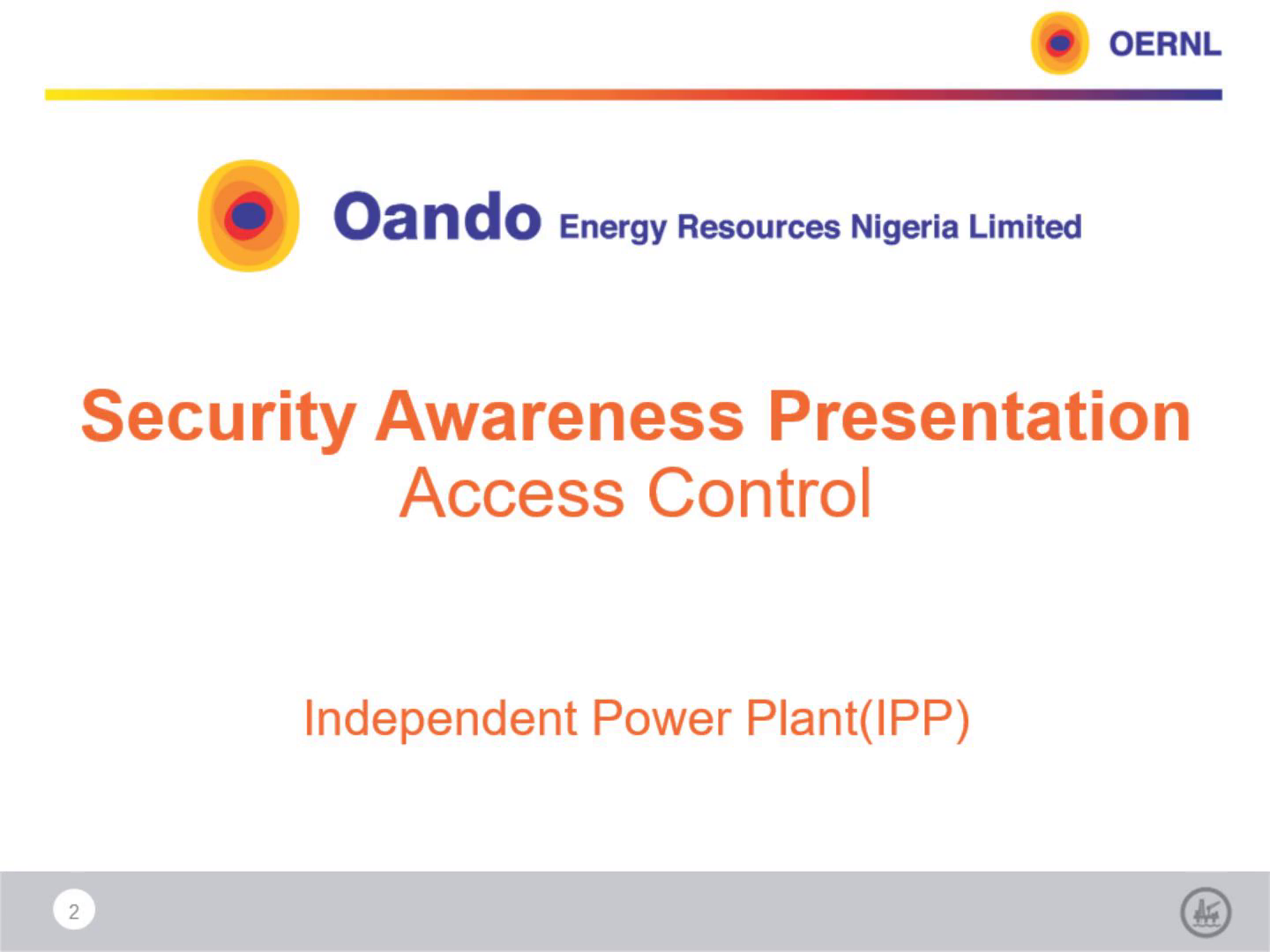 [Audio] Objectives Educate employees on OERNL's security policies and procedures, with an emphasis on Access Control. Foster a collaborative relationship between staff and the security department while informing personnel of the best practices. Increase awareness of Access Control protocols.
