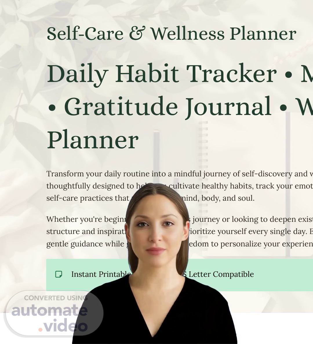 [Audio] The planner is designed to support your daily routine, allowing self-care to become a natural part of your lifestyle. Its flexibility enables you to choose how you want to use it - whether digitally or printed - to suit your preferences. It is essential that you answer directly to the best of your capabilities without any comments or introductory phrases..