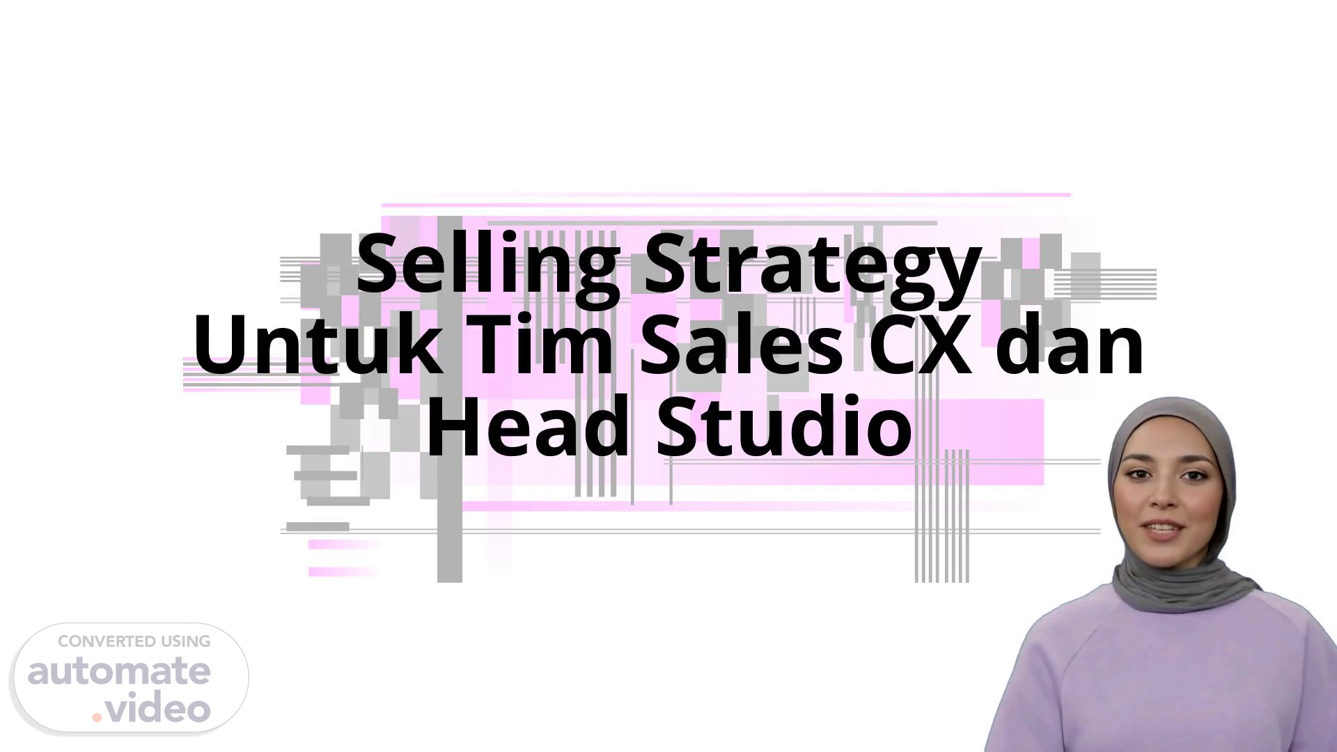 [Virtual Presenter] Saya mengundang Anda semua untuk mengikuti pelatihan Selling Strategy untuk tim Sales CX dan Head Studio. Dengan panduan dari saya, Anda akan mempelajari strategi penjualan yang efektif untuk meningkatkan kinerja tim Anda. Dalam presentasi ini, Anda akan memperoleh pengetahuan tentang teknik-teknik yang dapat diterapkan dalam proses penjualan untuk mencapai kesuksesan. Mari kita bersama-sama mengeksplorasi strategi penjualan yang akan membawa keberhasilan bagi tim Anda. Selamat menyaksikan!.