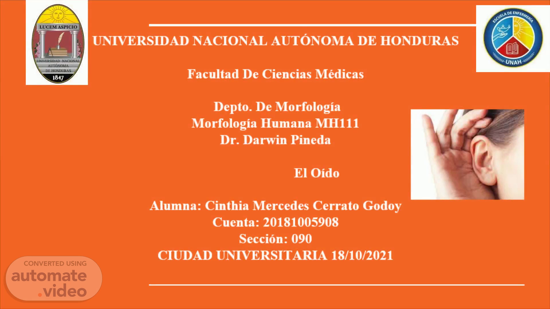 UNIVERSIDAD NACIONAL AUTÓNOMA DE HONDURAS Facultad De Ciencias Médicas Depto. De Morfología Morfología Humana MH111 Dr. Darwin Pineda El Oído Alumna: Cinthia Mercedes Cerrato Godoy Cuenta: 20181005908 Sección: 090 CIUDAD UNIVERSITARIA 18/10/2021.