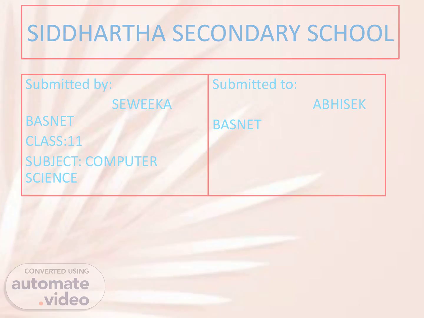 [Virtual Presenter] SIDDHARTHA SECONDARY SCHOOL Submitted to: ABHISEK BASNET Submitted by: SEWEEKA BASNET CLASS:11 SUBJECT: COMPUTER SCIENCE.